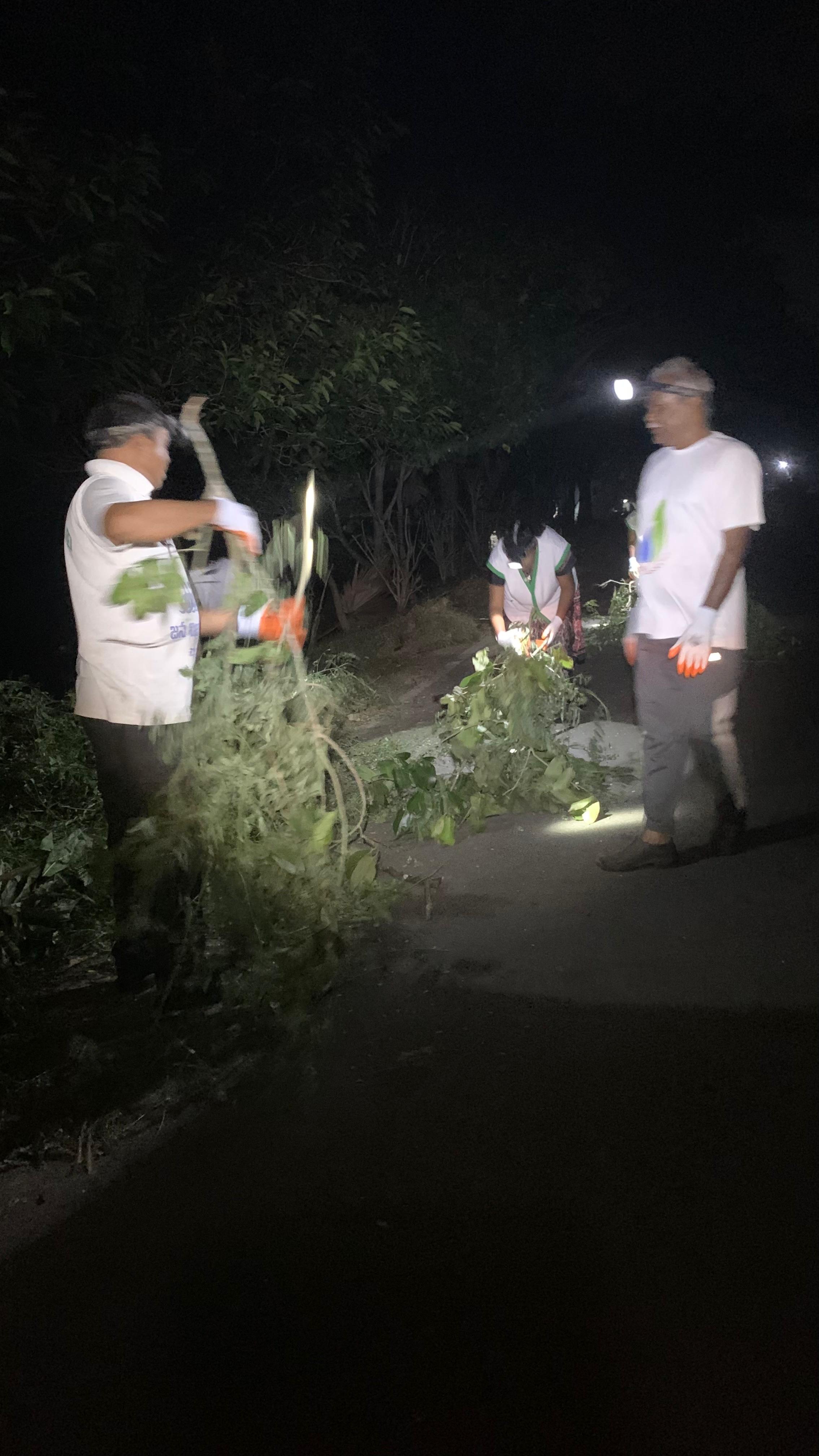 కార్యకర్తలు నరికిన కొమ్మలను కొద్ది దూరంలో ఉన్న కాసానగర్ చెరువు కోతకు గురైన ప్రదేశంలో వేసి ఆ మార్జిన్ గుంటను కొమ్మలు రెమ్మలూ తుక్కు వేసి మార్జిన్ కొంత మెరక చేసినట్లయింది. మహిళా కార్యకర్తలు రహదారి మార్జిన్ శ్రమకోర్చి దూరంగా ఉన్న చెరువు వద్దకు కొమ్మలను లాక్కెళ్ళడం అక్కడున్న సైనికులు వాటిని కోతకు గురైన ప్రాంతంలో వేసి తొక్కడం జరిగింది.