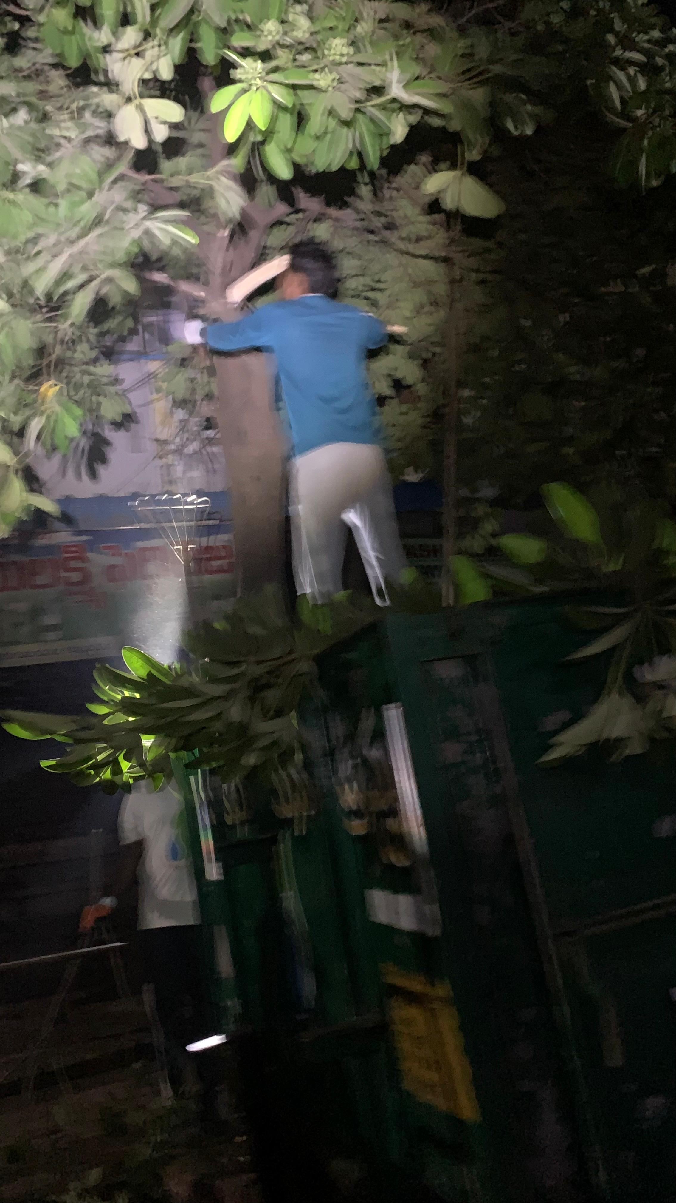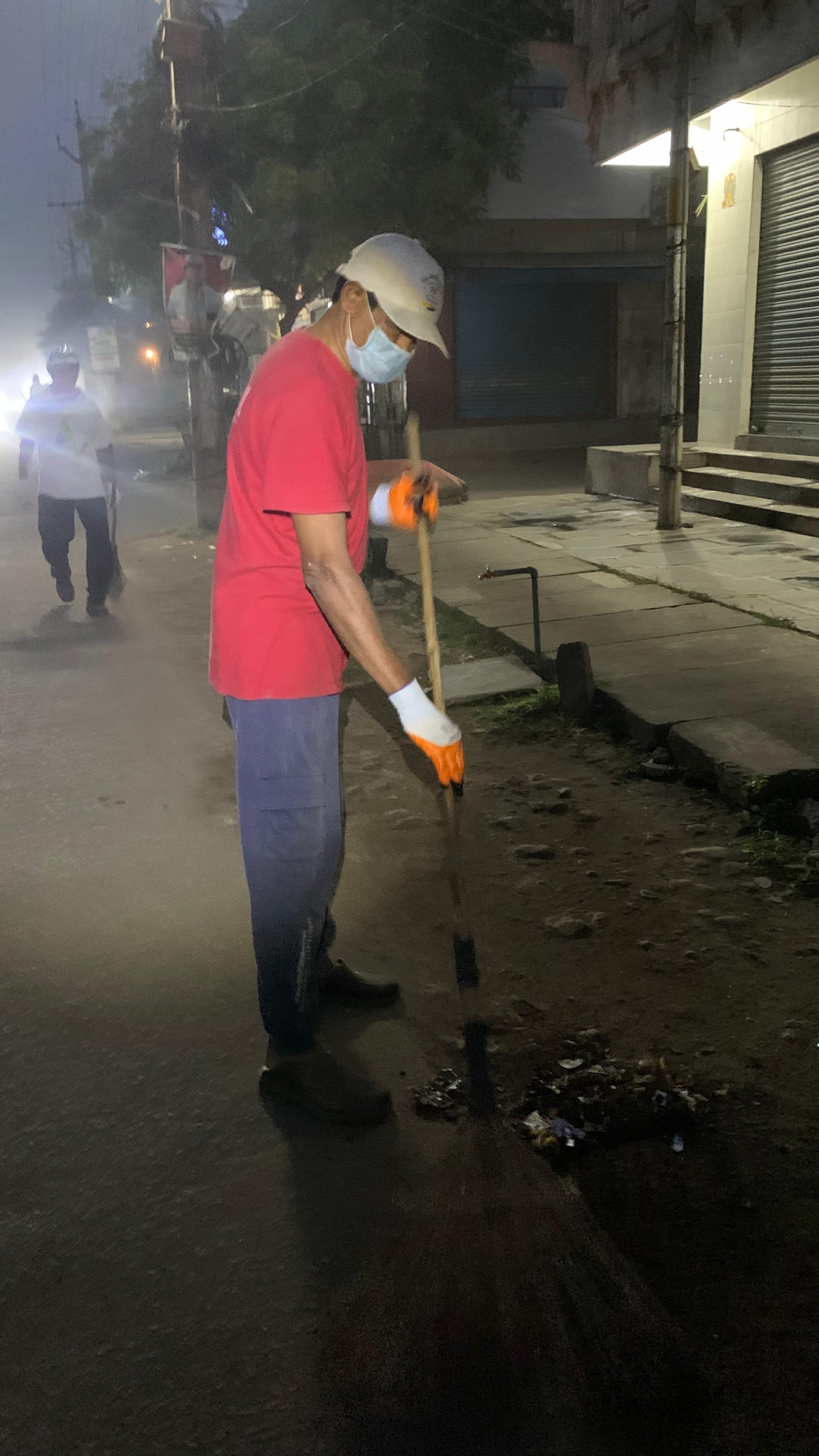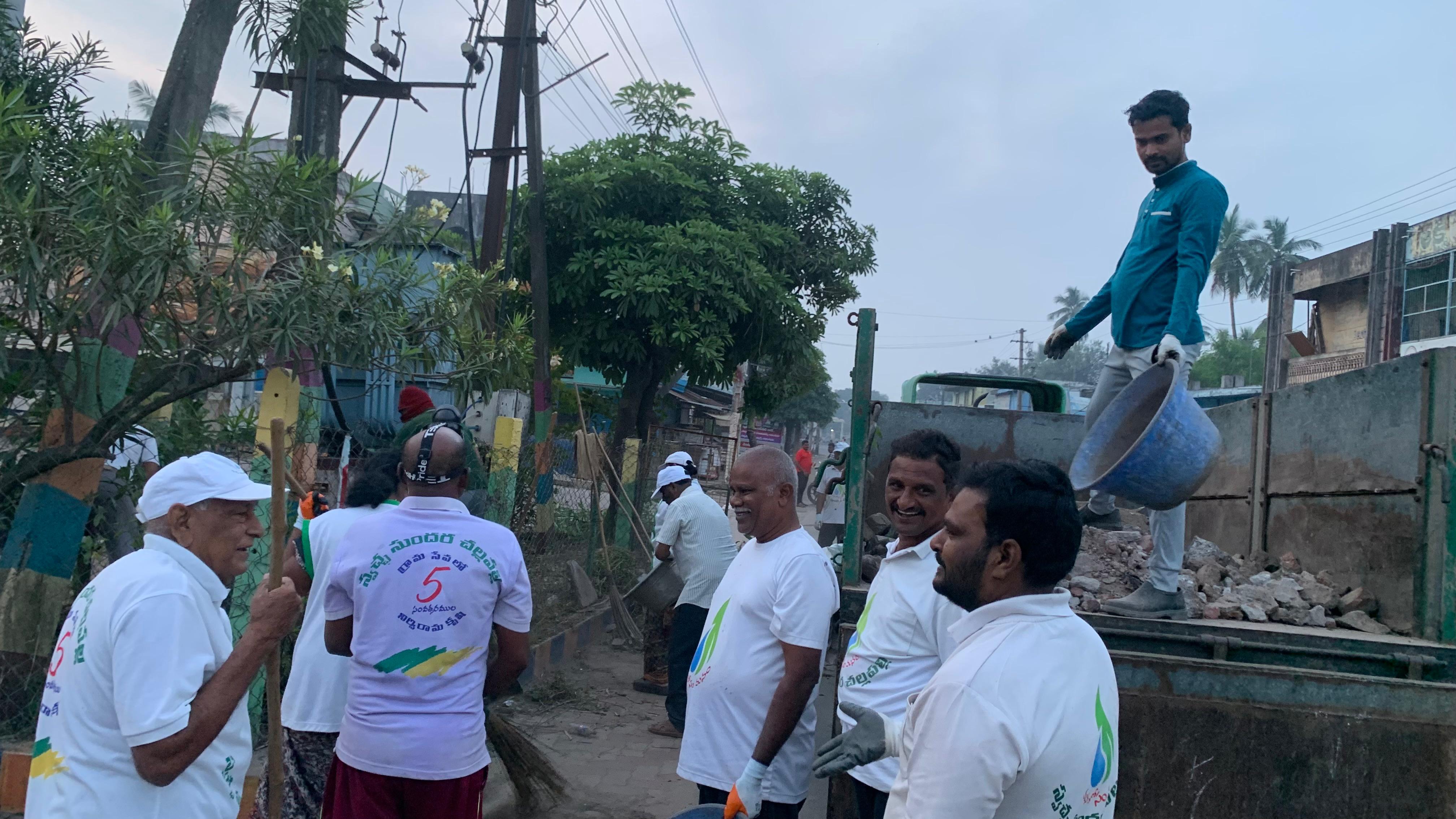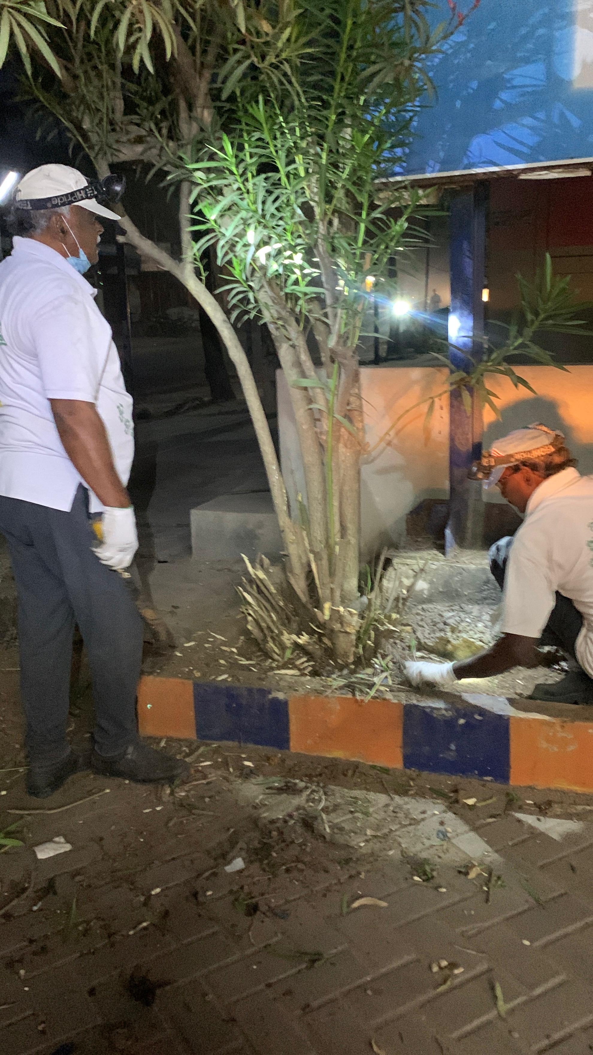 MRF షోరూమ్ వద్ద చెట్ల కొమ్మల్ని ట్రిమ్ చేశాక - చాల వరకు వ్యర్ధాల లోడింగు ఐపోతున్నదనుకొనే సమయంలో పెట్రోలు బంకు ఎదుటి ట్రాన్స్ఫార్మర్ దగ్గర ఆరేడుగురు శుభ్రపరచడమూ, మళ్లీ వాటి లోడింగులతో ఎట్టకేలకు 6.15 కు పని విరమించారు.