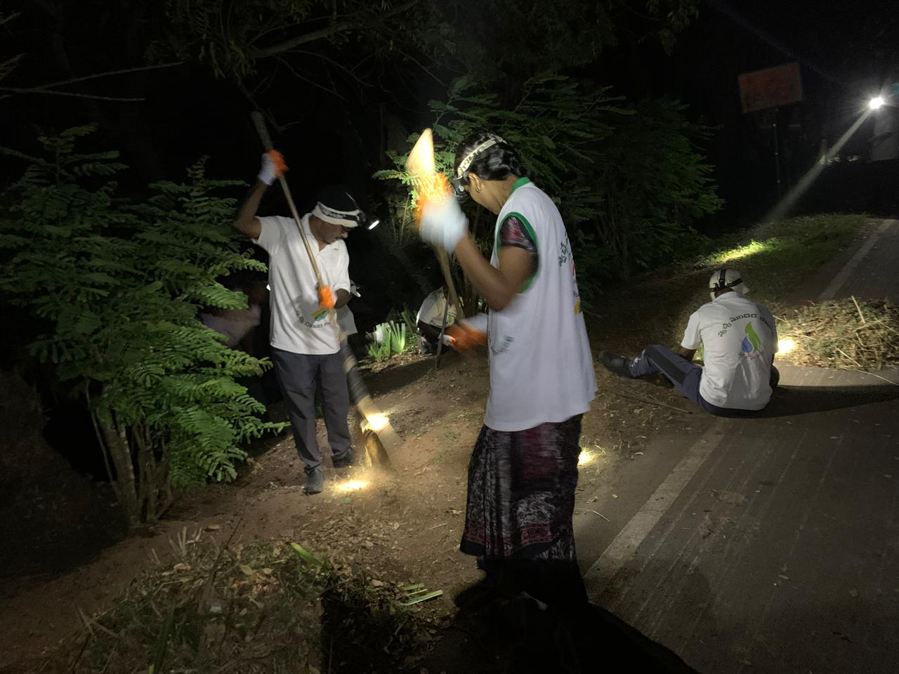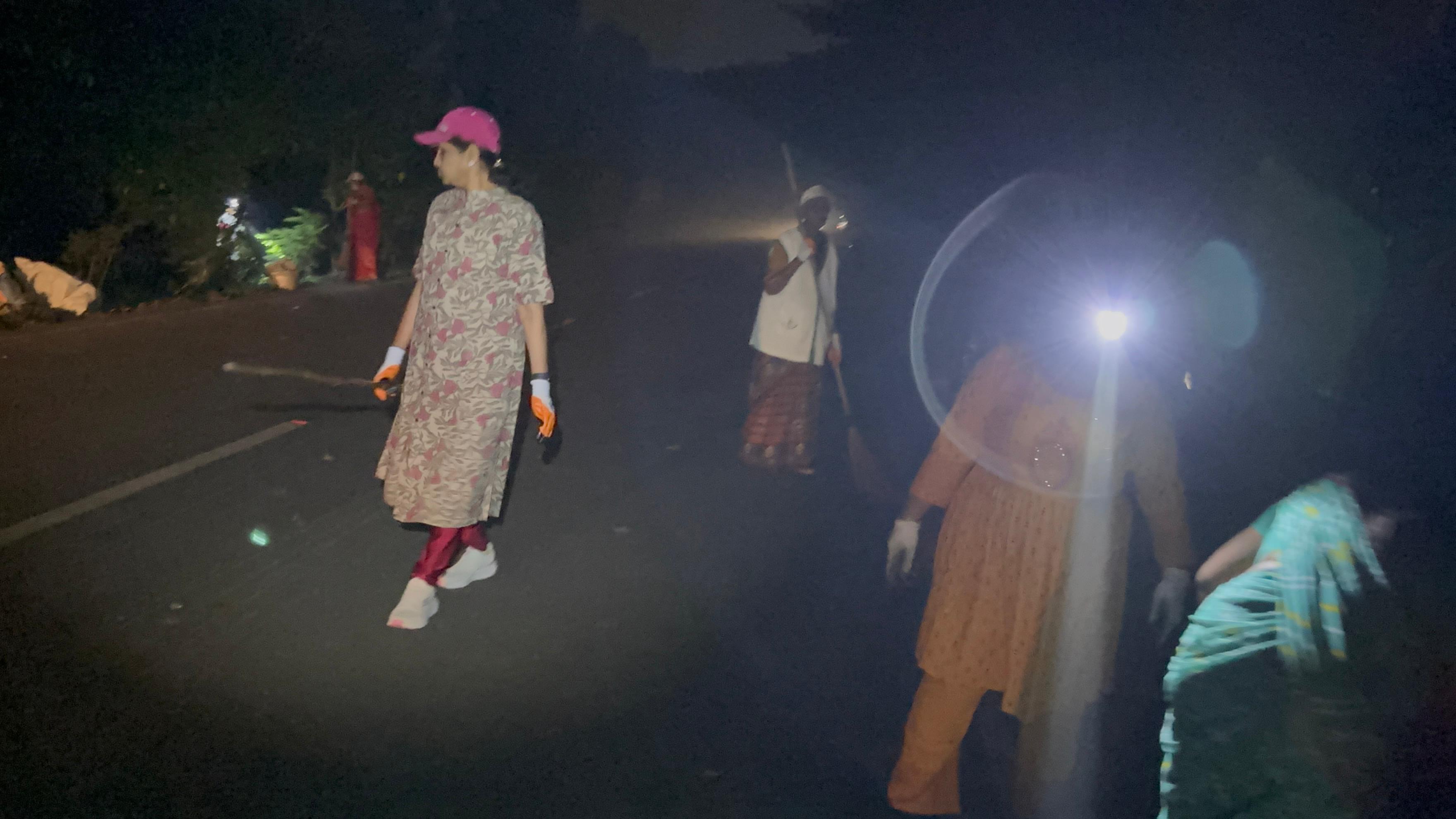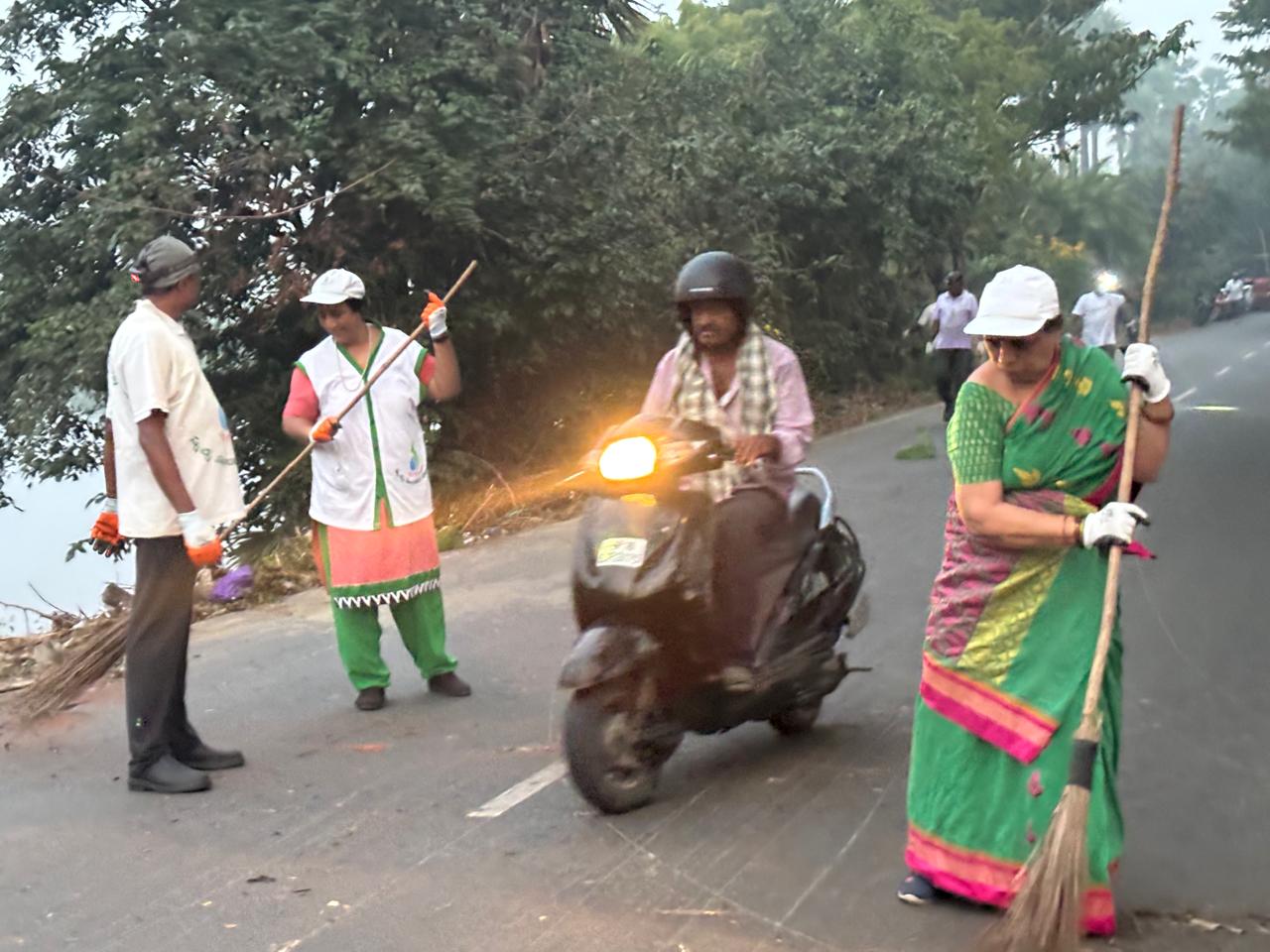 -ఒకటికి రెండుమార్లు మహిళా కార్యకర్తలు బాటనూ - రెండు ప్రక్కల్నీ ఊడ్చడం కంట బడినా,