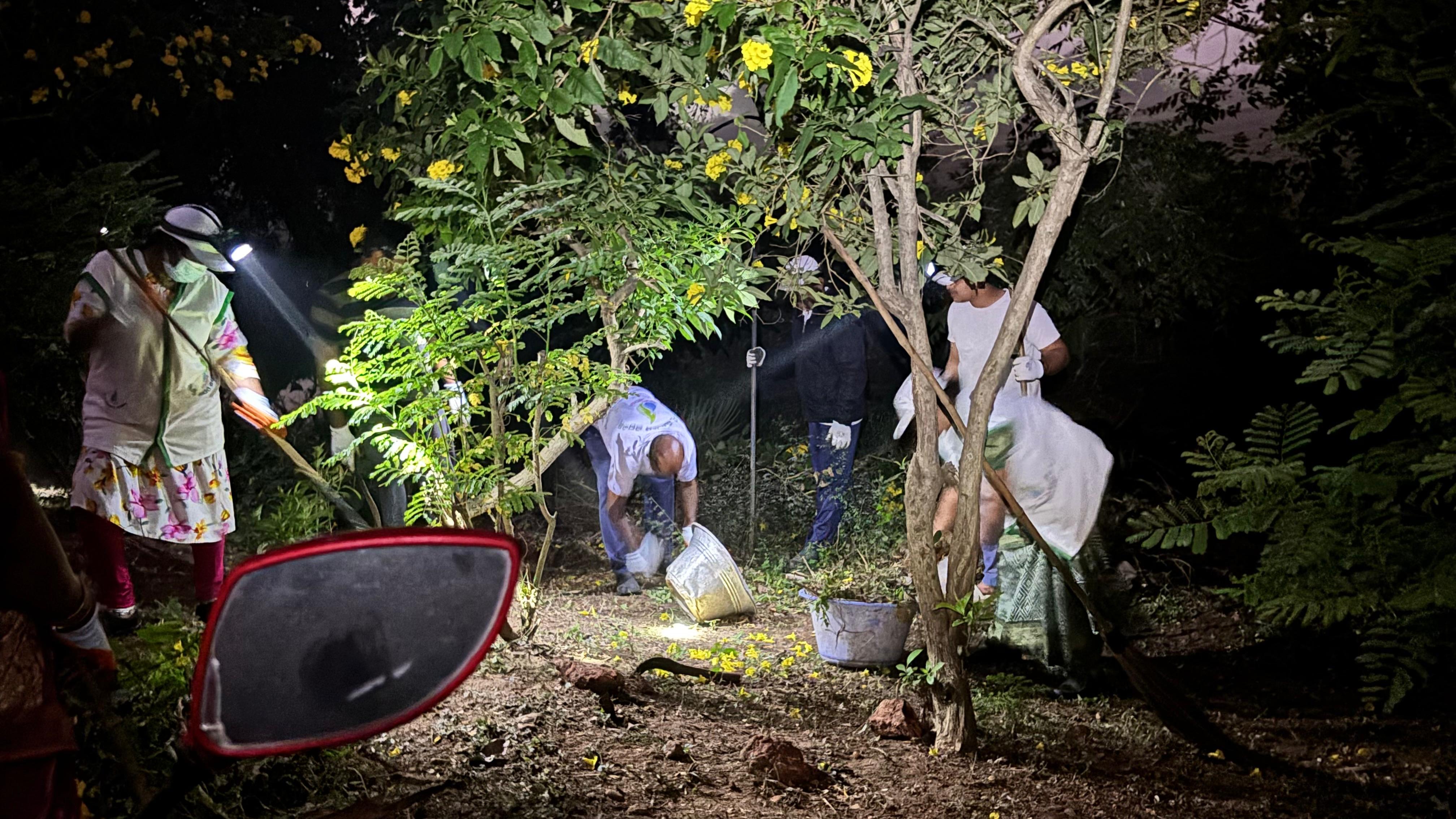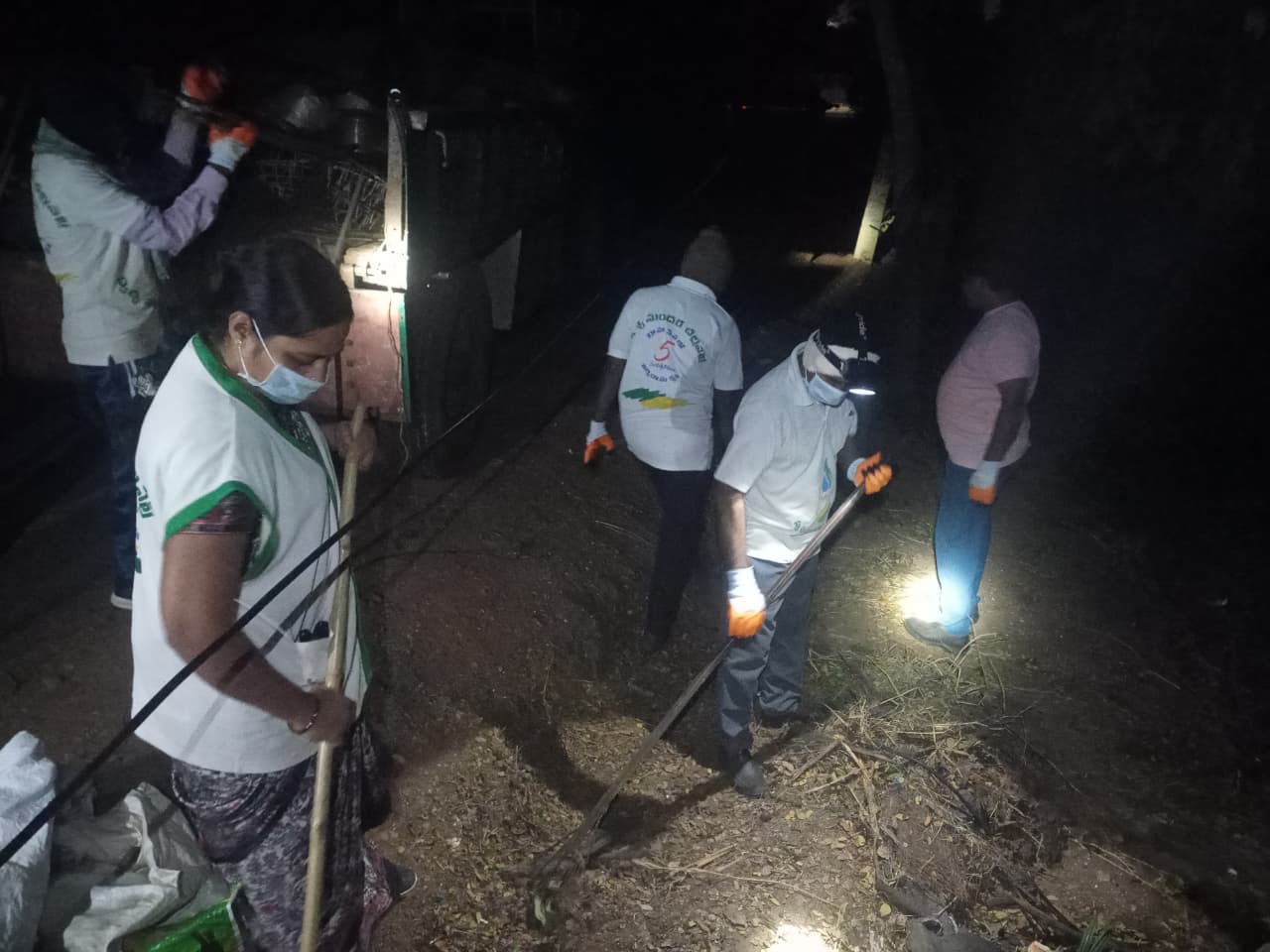 ఇక ఆ రహదారి బాధ్యతల కోసం ఆబాలగోపాల వృద్ధ చైతన్య ఝరులైన 3-4 గ్రామాల (రామానగరం, చల్లపల్లి , కాసానగర్ , శివరామపురం) స్వచ్ఛకార్యకర్తలు! ఈ చీకటి గుయ్యారం పనుల్లో లీనమైన సోదర స్వచ్చ కార్యకర్తల భద్రత పట్ల మా ఒకరిద్దరి ఆందోళనలు! పోనీ- ఇంత రిస్కీ స్వచ్ఛ సుందరీకరణ కోసం ఇందులో కొందరు రేపు మానుతారా అంటే మానరు సరి గదా- రేపు ఆదివారపు స్పెషల్ శ్రమదానాల కోసం ఏ 50 మందో తయారు!