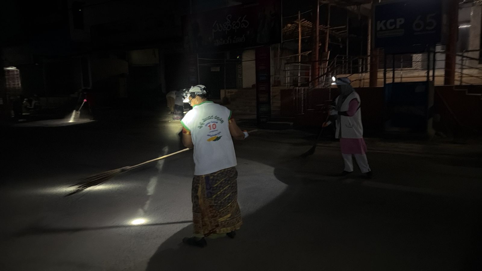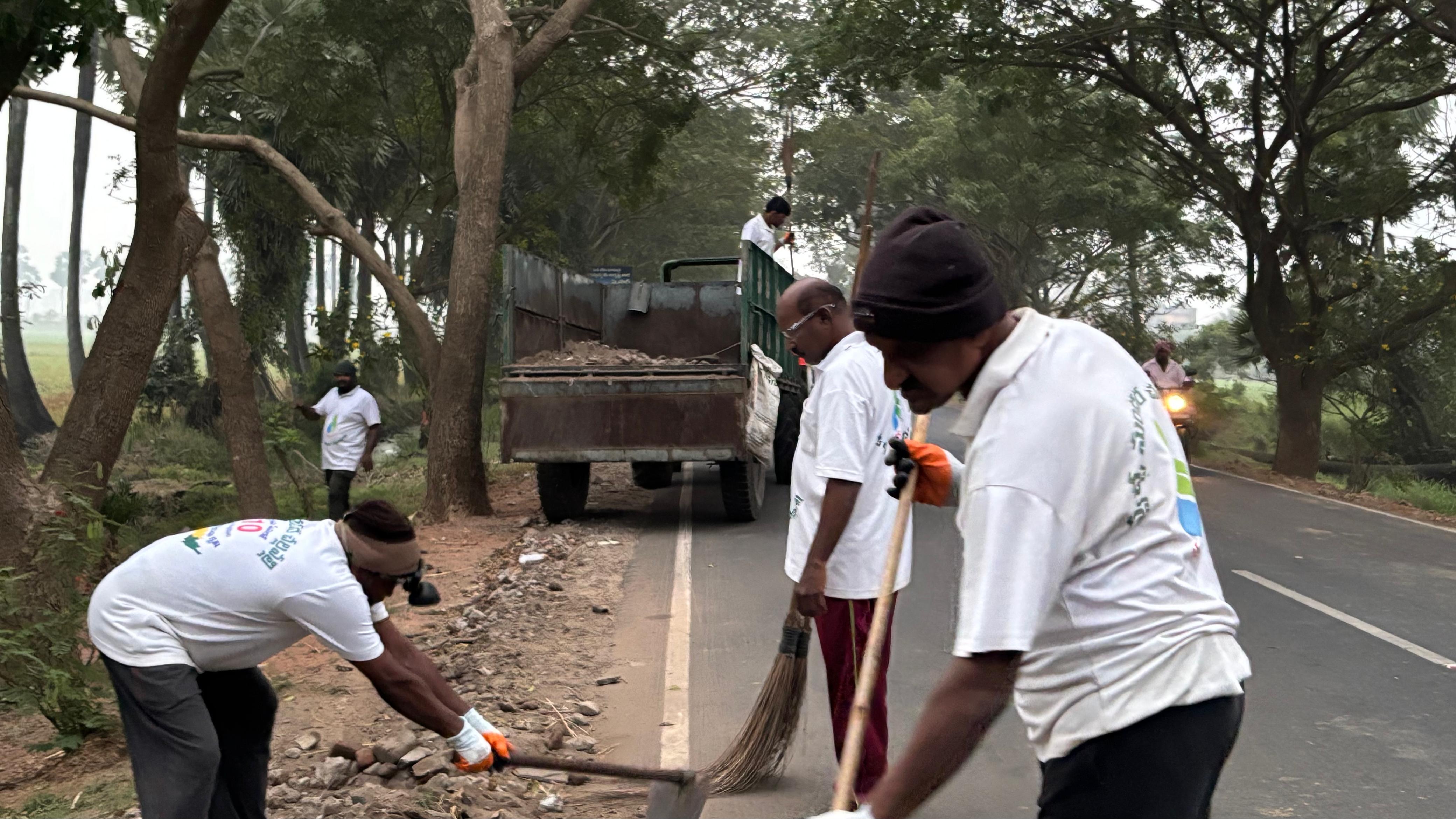 పోస్టాఫీసు రోడ్డులో ఊడుస్తున్న ముగ్గురికి - తూము, రాజు, మరొకరు డ్రైన్నుండి ఘాటు వాసన తగలగా, దంతె-పార-పలుగుల్తో అరగంటకు పైగా బరువైన కప్పు పలకలు లేపి, అడ్డుపడిన సిల్టు, రాళ్లు రప్పల్ని బైటకు లాగి, నిలవ మురుగు నీటికి పరుగునేర్పిగాని విశ్రమించ లేదు. సదరు తూము వద్ద తూము-తదితర కార్యకర్తల త్రయాన్ని ఫొటోలో గుర్తించండి.