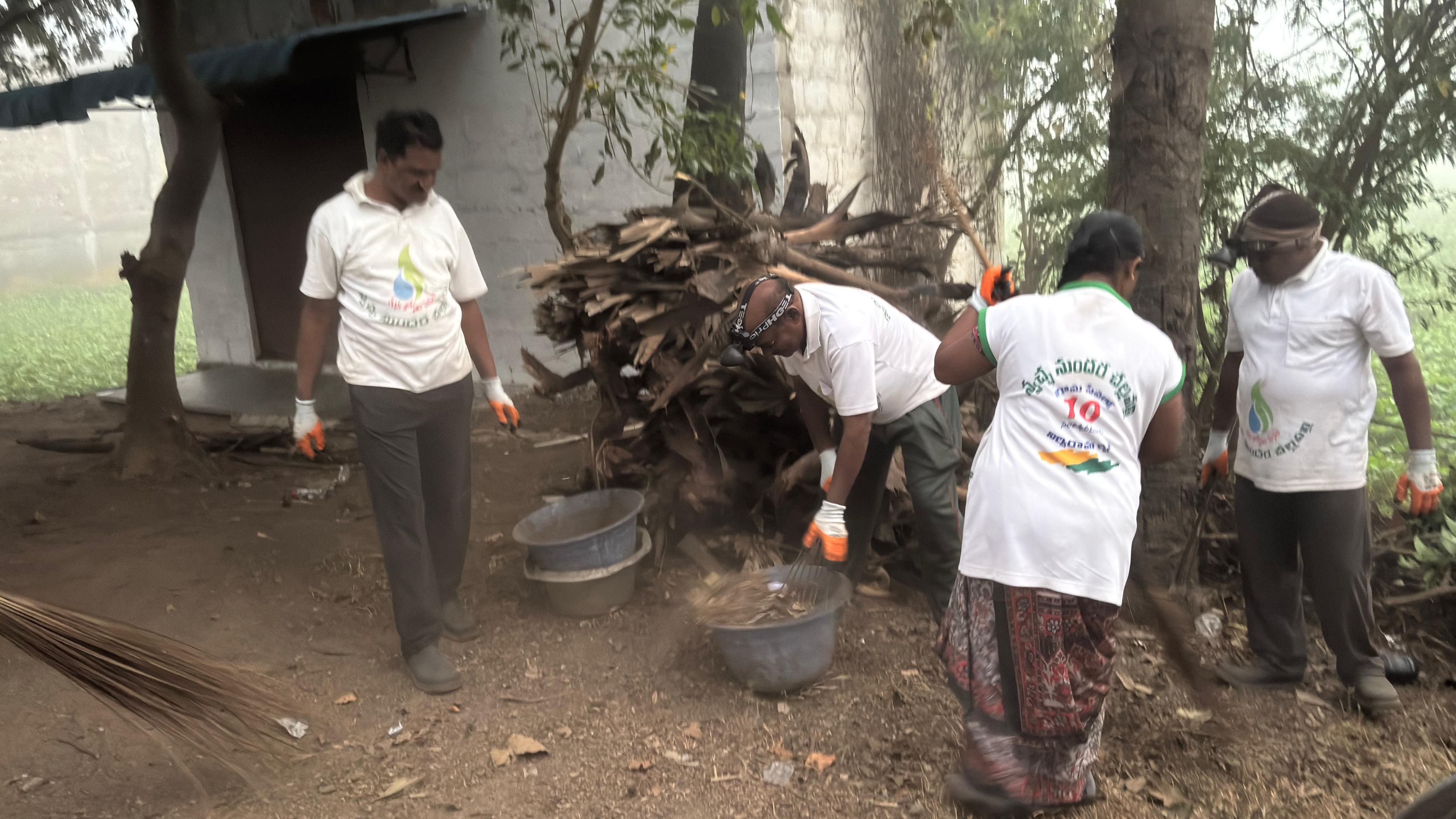 ఆగి, రహదారి పారిశుద్ధ్యం మొదలెట్టింది 16 గురే! గబగబా వచ్చి కలిసి, బాట అంచుల - డ్రైనుల అస్తవ్యస్తతలను సరిద్దింది మరొక 13 మందే! 29 మంది పట్టుదలతో – 2 గంటల కఠిన శ్రమతో అందంగా మారినది సాగర్ ఆక్వా కర్మాగారం నుండి మేకలడొంక దిశగా మరొక 120 గజాల బాటే!