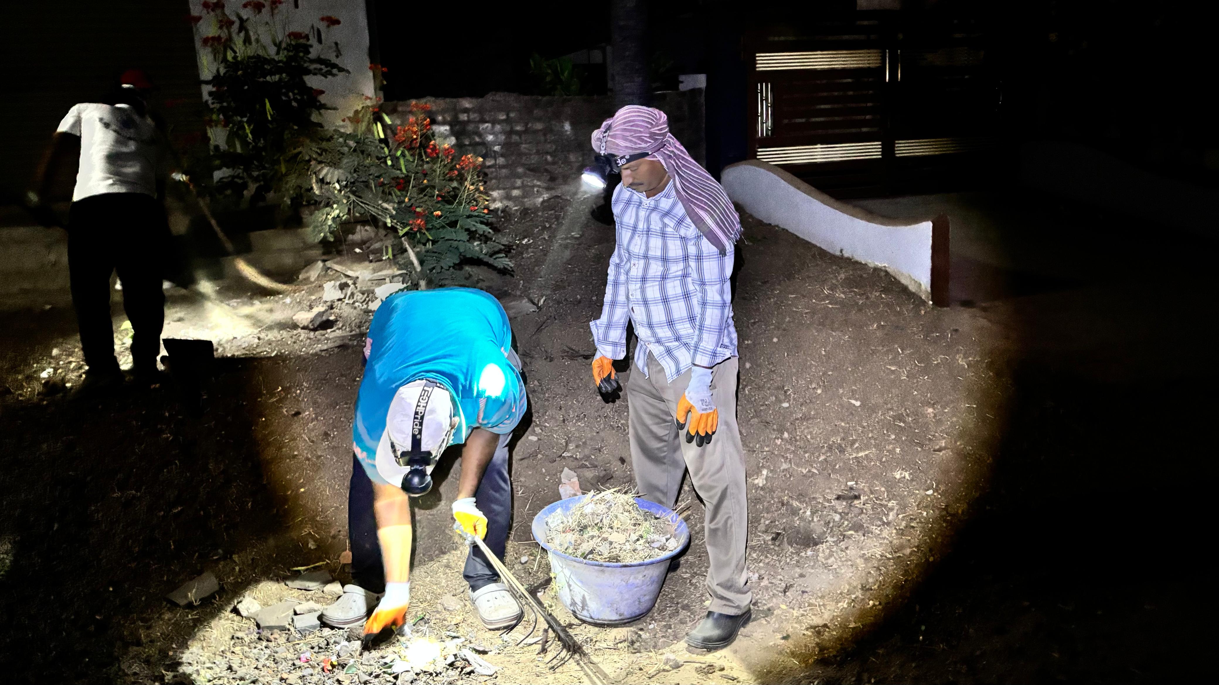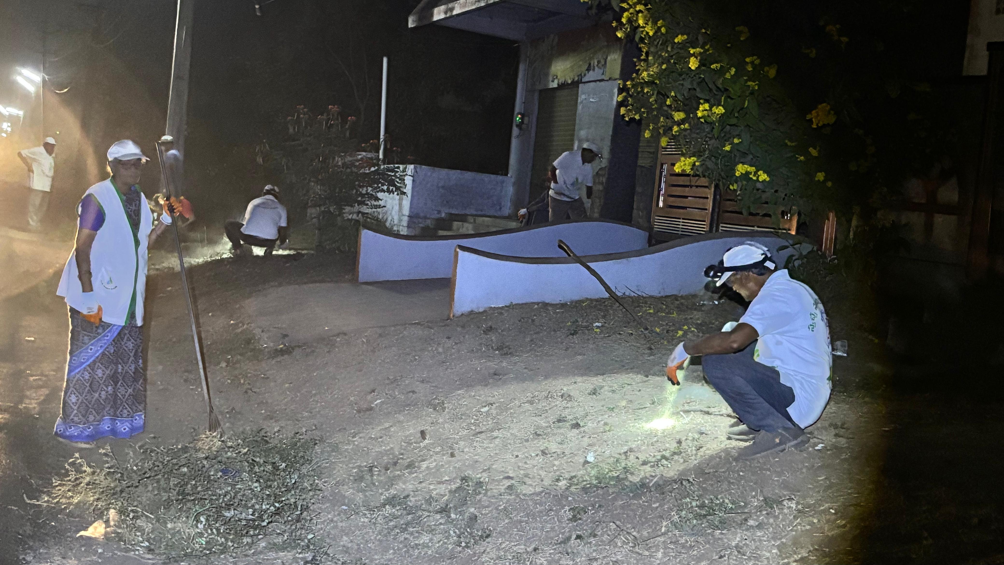 నడుస్తున్న ఈ స్వచ్ఛ సంస్కృతీ నిర్మాణ చరిత్రకు సాక్ష్యంగా 4:20 కి 13 మంది కార్యకర్తలు తొలి ఫొటో దిగారు. గబగబా మిగిలిన 22 మందీ శివరామపురం బాటలో పెట్టబోయే గ్రావిటీ పాఠశాల వద్దకు చేరుకొన్నారు. చేతొడుగులూ, తల దీపాలూ ధరించారు. తమ తమ పనిముట్లు ధరించి, రహదారి కాలుష్యాల మీద తిరగబడ్డారు.