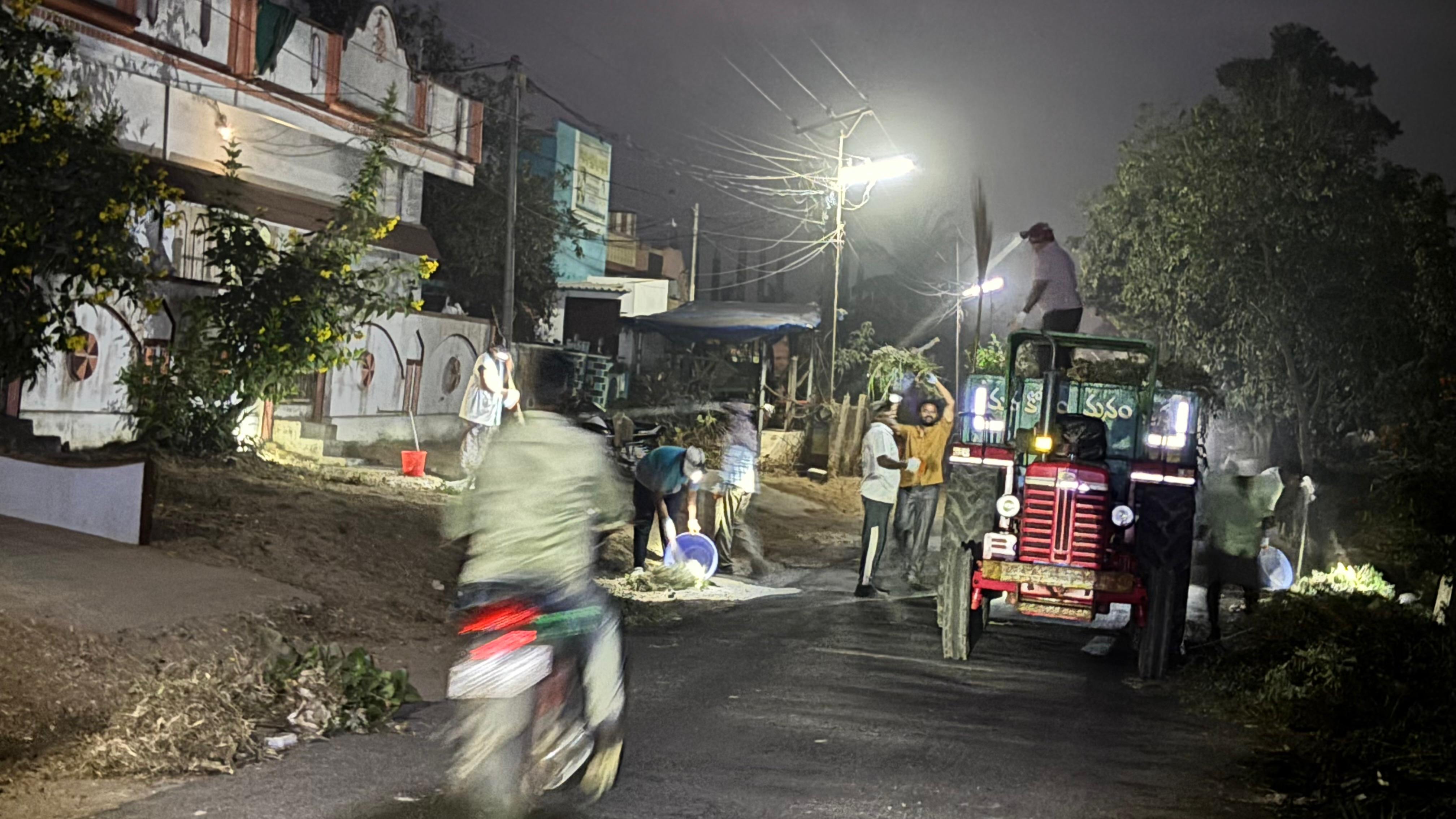 వాళ్ల దెబ్బలకు జడిసి వీధి దుమ్ముల, సింగిల్ యూజ్ ప్లాస్టిక్కుల కాలుష్య భూతం తోకముడిచింది, వ్యర్ధాలతో ట్రాక్టర్ నిండింది, 150 గజాల వీధి శుభ్రపడింది, బట్టలకూ-ఒంటికీ చెమటా-దుమ్మూ కొట్టుకొంటేనేం? అనుకొన్నది సాధించినందుకు కార్యకర్తలు బాగా సంతృప్తి చెందారు.