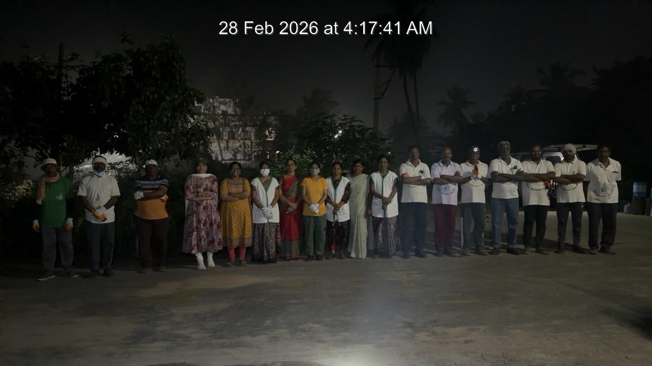 - ఈ ఫిబ్రవరి మాసాంతపు శనివారం మాత్రం మరీ వేకువ 4.17 కే 20 మందితో గంగులవారిపాలెం వీధిలోని సన్ ఫ్లవర్ కాలనీ వద్ద ఆ రథచలనం మొదలై, 18 మంది మహిళలతో సహా-మొత్తం 55 మంది-కత్తులతో, చీపుళ్లతో, దంతెలతో, పారలతో ఈ స్వచ్ఛ రథాన్ని నెట్టడంతో -