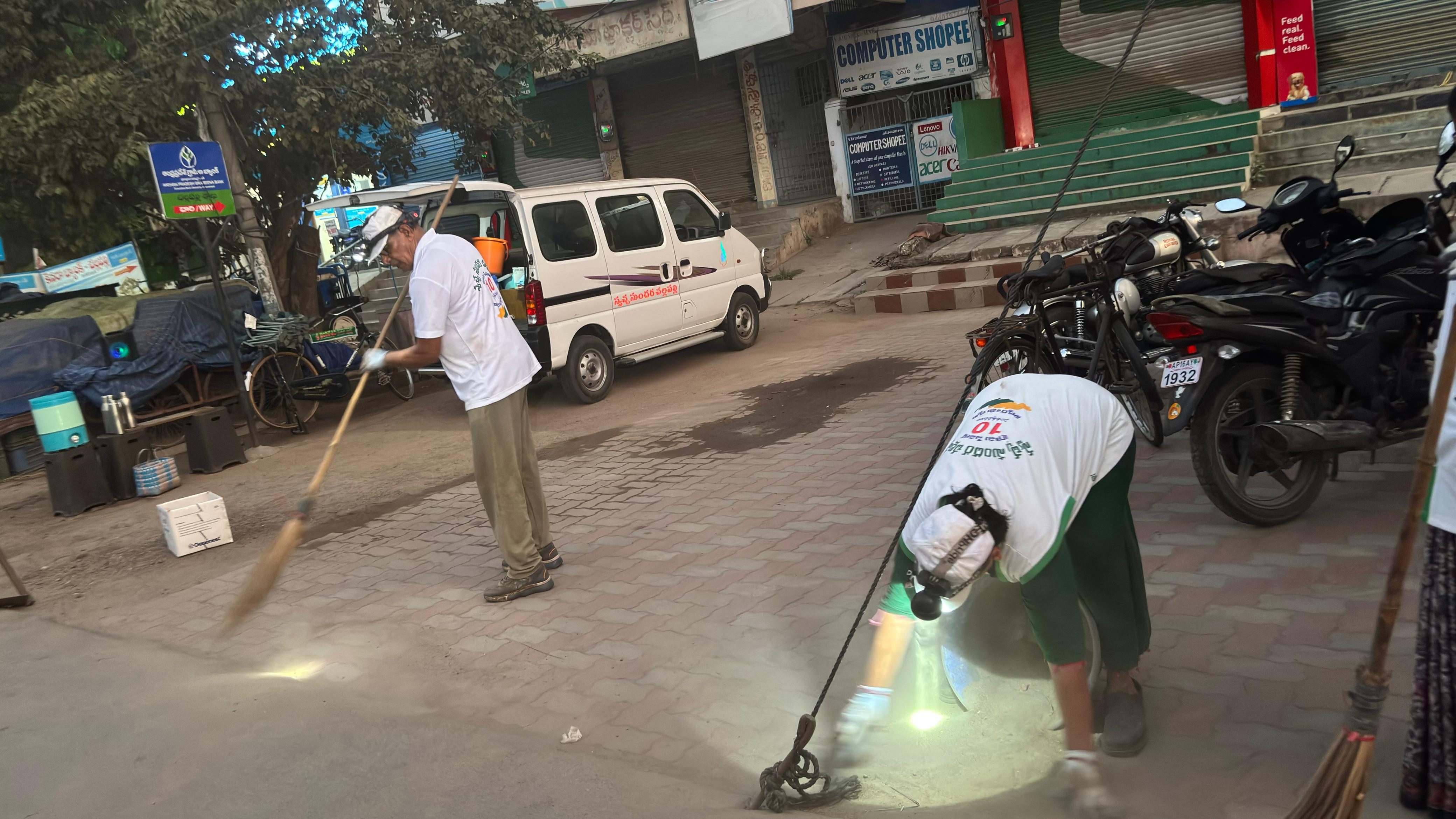 లెక్కప్రకారం ఈ ఉదయం ATM సెంటరు నుండో పెట్రోలు బంకు వద్ద నుండో పారిశుద్ధ్యం మొదలై, అవనిగడ్డ మార్గంలోని బంకు దాక జరగాలి. కాని, నిన్నటి పనులు జరిగిన చోటు మళ్లీ దుమ్ము, ఇసుక, సింగిల్ యూజ్ ప్లాస్టిక్ లు కనపడగా, సహించలేని కార్యకర్తలు పిండిమర వద్ద నుండే మళ్లీ పనులు మొదలుపెట్టారు.
