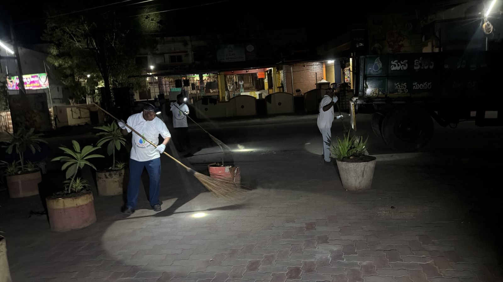 ఇక అక్కడి నుండి చెప్పేదేముంది - పళ్ల, కొబ్బరి దుకాణాల, ఉభయ దేవాలయాల, ముఖ్యంగా ATM కేంద్రాలన్నిటినీ - ఊడవడమూ, చిన్న కార్ల స్టాండు వెనక 2 గుట్టల పిచ్చి చెట్ల పని పట్టడమూ, ఇసుకా - దుమ్ముల్ని ట్రాక్టరులో నింపుకోవడమూ, ఇద్దరేమో బంకు ప్రక్క సందును శుభ్రపరచడమూ.... షరామామూలుగానే జరిగిపోయినవి.