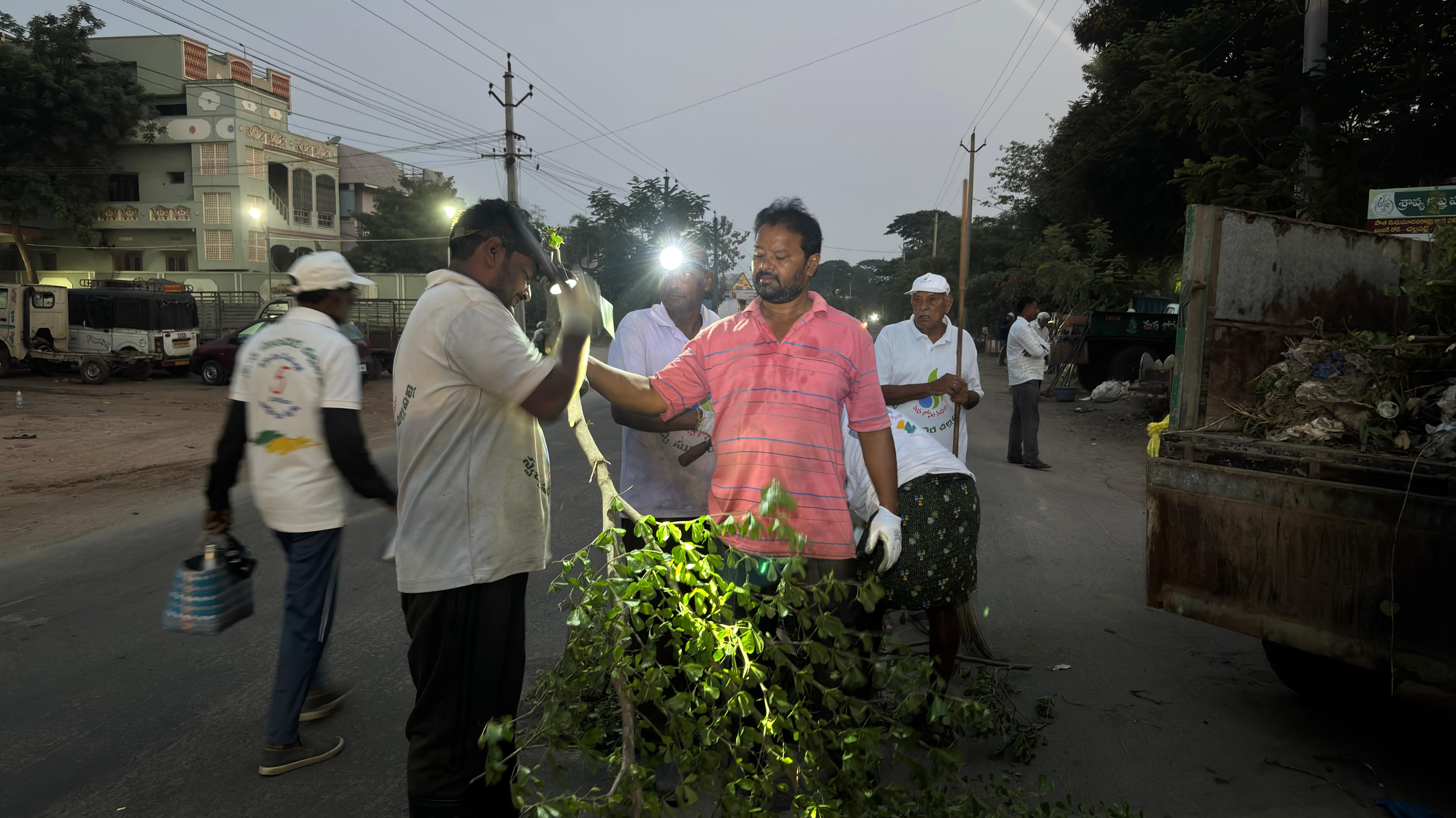 మిగిలిన సగం మందీ ప్రభుత్వాసుపత్రి వీధి అందచందాలకు పూనుకొన్నారు. నన్ను ఆశ్చర్యపరచిన దృశ్యమేమంటే – చిన్న హోటల్, ఆ ప్రక్క దుకాణం ముందు నిన్నా - మొన్నా దొరికిన వ్యర్ధాలు కాక ఈ పూట అంత పెద్ద ప్రోగు ఎలా తయారయిందా అని! బహుశా ఏ కార్యకర్తో ఆ రెండిటి వెనక దాగిన ఈ వ్యర్ధాలను కనిపెట్టి ఉండొచ్చు!