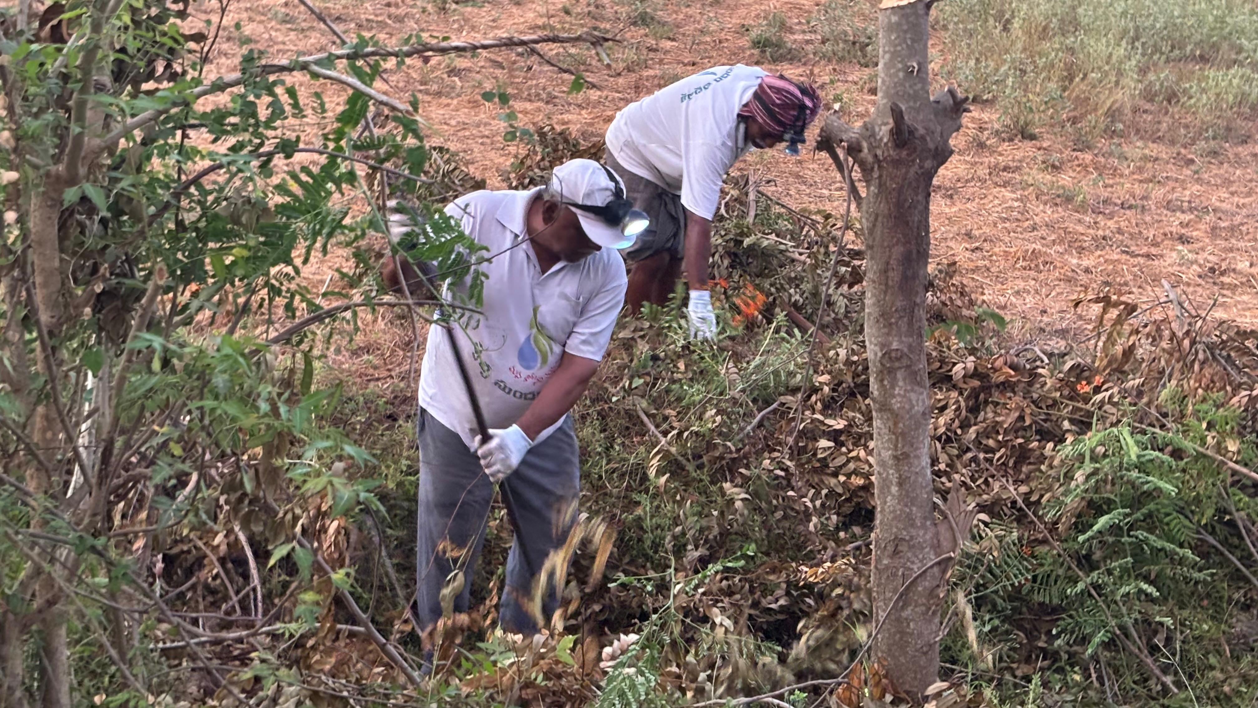 - ఆ దగ్గరి వారెవరికైనా ఉపయోగపడేలా పెద్ద కొమ్మల్ని సైజులుగా మార్చి గుట్టలుగా పేర్చడమూ,