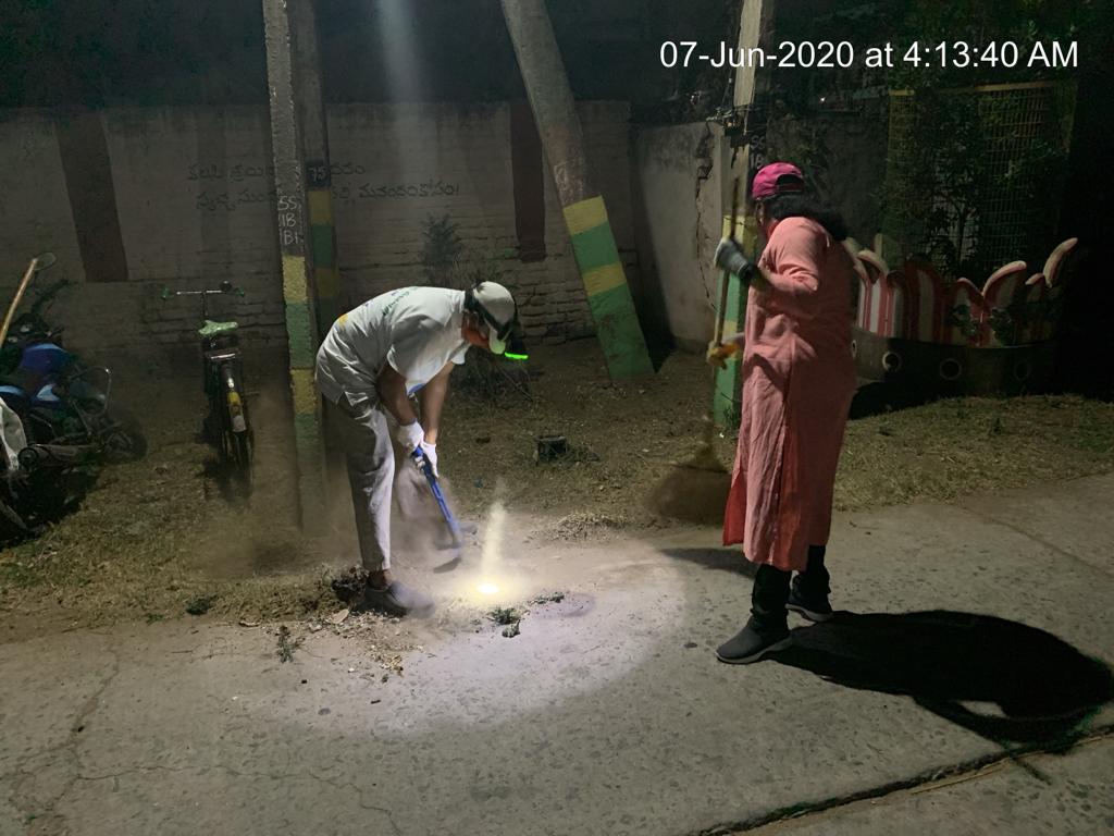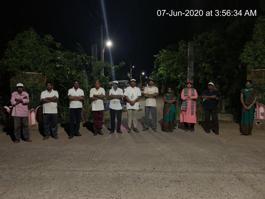 ఈ వేకువ 3.56 కే బాలికల హాస్టల్(1 వార్డు) దగ్గర ప్రారంభమయిన శ్రమ బంధుర – సుమ సహృదయ స్వచ్చోద్యమ కారుల గ్రామ మెరుగుదల చర్యలలో పాల్గొన్నది 39 మంది. విజయవాడ నుండి విచ్చేసిన ఇద్దరు- గోపాలం కోమలి- శివన్నారాయణులు కాస్త వెనకాముందుగా వీరితో చేరి హాస్టల్ కు ఉత్తర , దక్షిణ, పడమర ప్రక్క- 3 రోడ్ల మీద జరుగుతున్న- బహుశా ప్రపంచంలో మరెక్కడా జరగని-చూస్తే తప్ప నమ్మలేని చల్లపల్లి స్వచ్చ- శుభ్ర-సుందరీకరణ దృశ్యాలను ఆ సాంతం తిలకించి ఆనందించారు! (వీళ్లిద్దరూ మామూలు వ్యక్తులు కారు-ఉభయ రాష్ట్రాలలో- 40 చోట్ల వైద్య శిబిరాలు నడుపుతూ 60 లక్షల మందికి పైగా అస్వస్తులను ఆదుకొంటున్న బ్రదర్ - మదర్- థెరిస్సాలు!