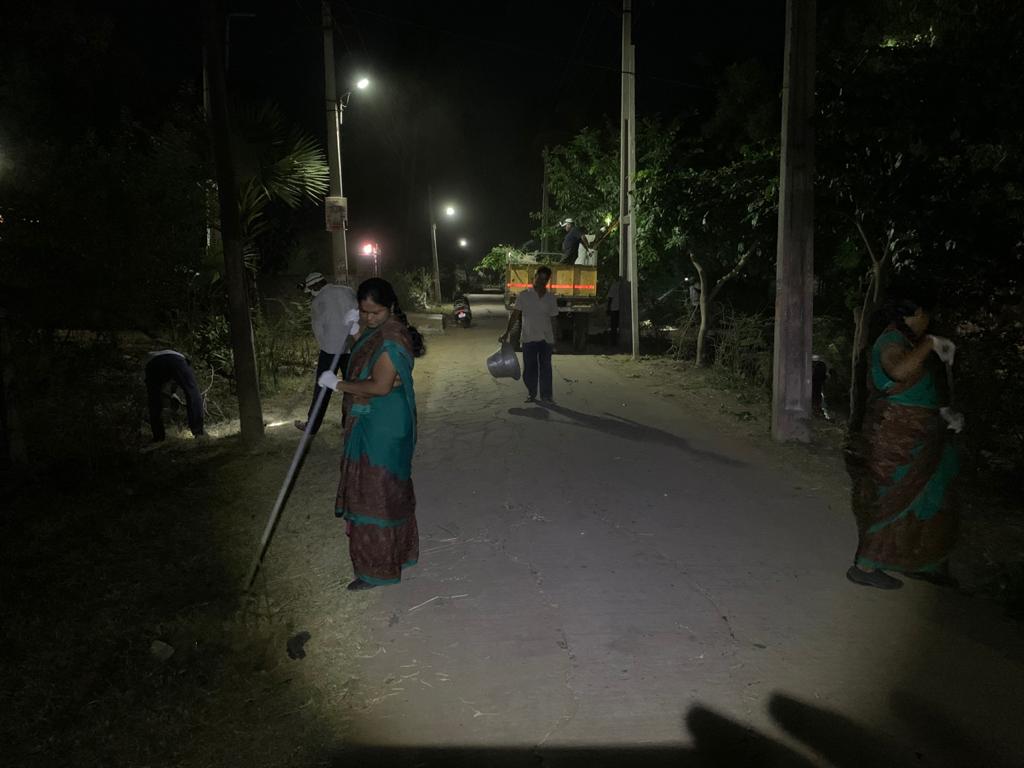 - ఏడెనిమిది మంది వసతి గృహ ఉత్తర- పడమర భాగాల డ్రైనును, వాటి గట్లను నానాజాతి కశ్మలాలను, తడిలోని గడ్డిని తొలగించి, ఆ వ్యర్ధాలను గొర్రులతో లాగి, ఆ పోగుల్ని డిప్పలతో ట్రాక్టర్ లో నింపి, చెత్త కేంద్రానికి తరలించారు.