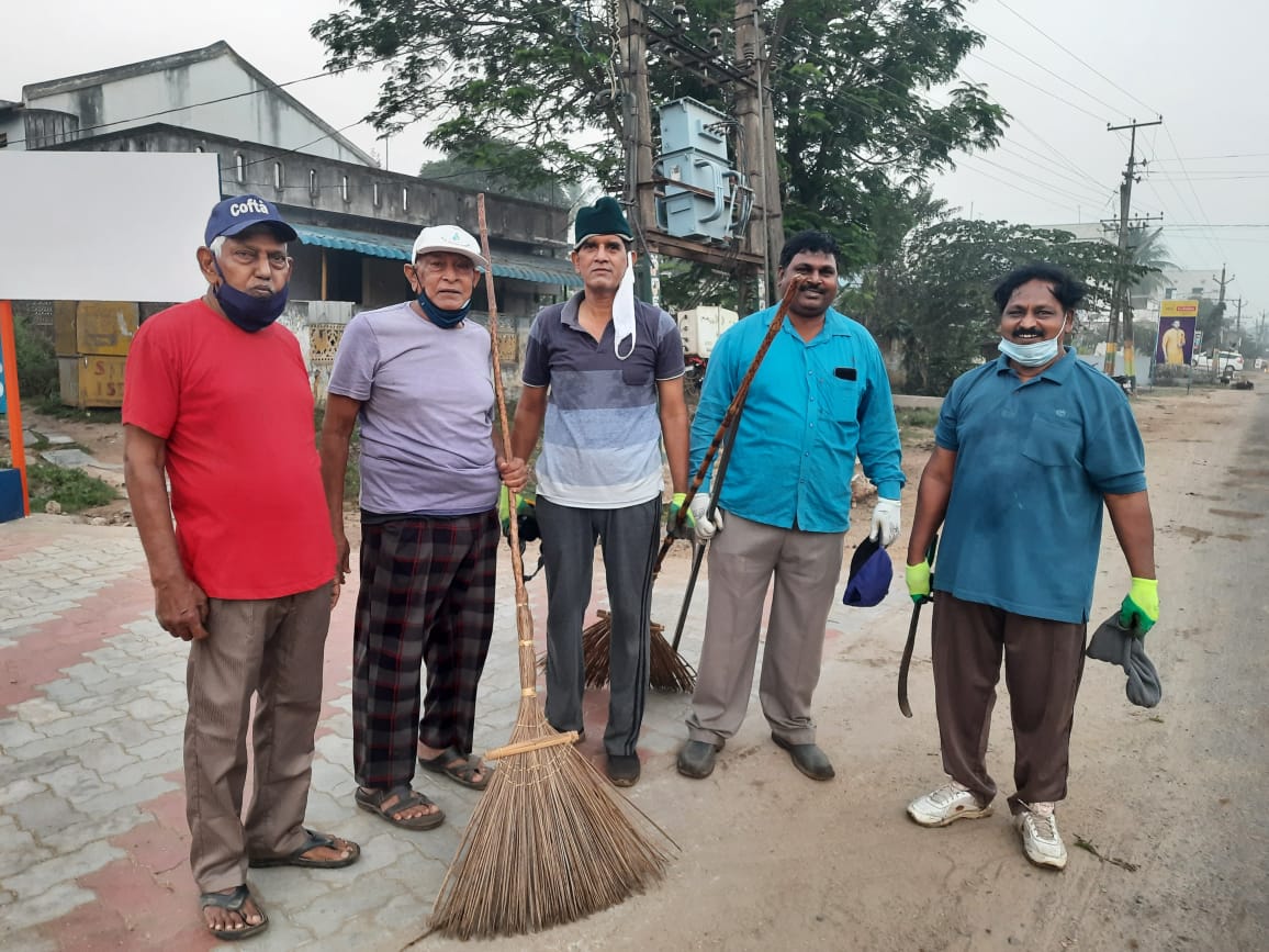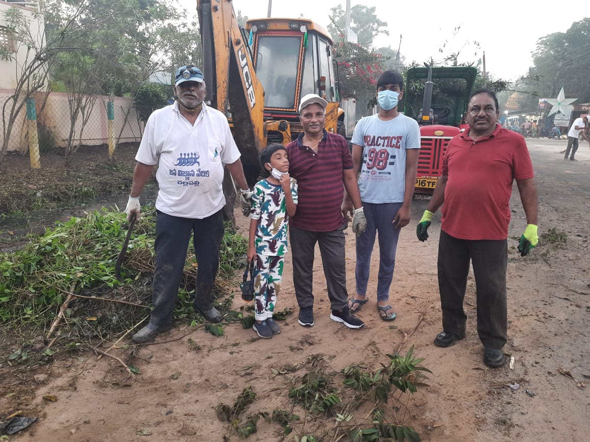 - విద్యుత్ కార్యాలయం ఎదుటి రోడ్డు దుమ్మునూ, ఆకులలముల్నీ, మురుగు కాల్వనూ, దాన్ని మూసేస్తున్న పిచ్చి తీగల్ని తమకు నచ్చేంతగా శుభ్రం చేశారు;