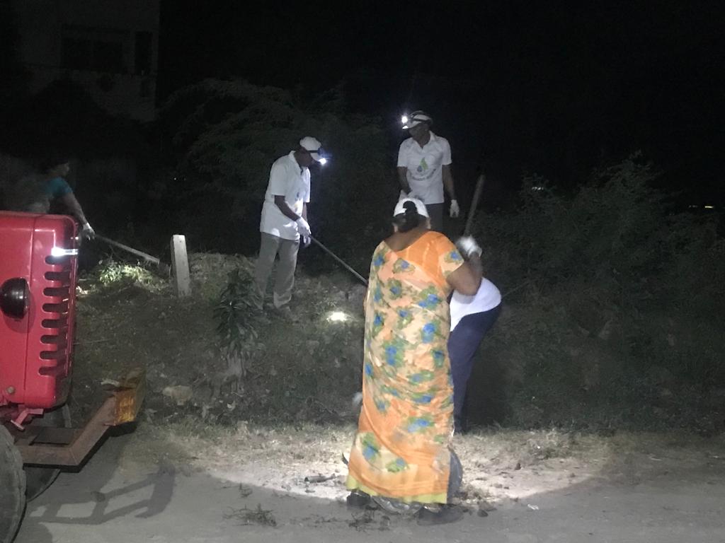 - ఒక పెద్ద నివేశన స్తలం ప్రక్క డ్రైనునూ, గట్లను శుద్ధి చేయడానికే 12 మంది కార్యకర్తల శ్రమ ఖర్చైపోయింది.
