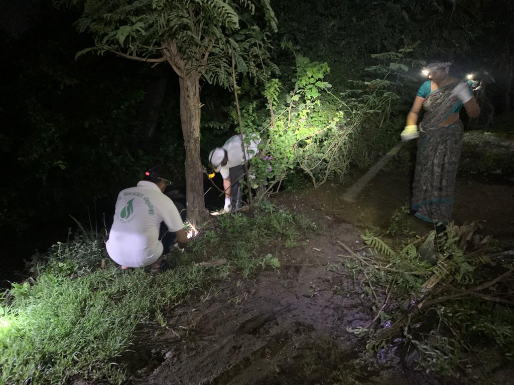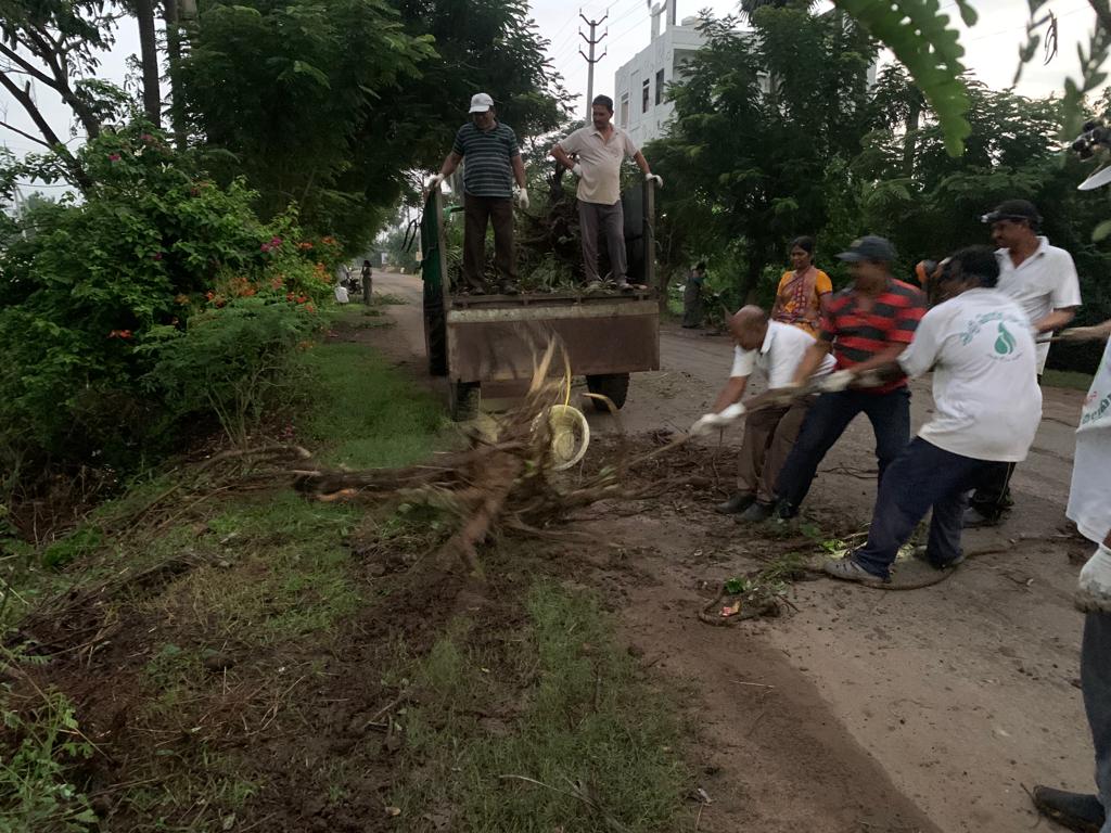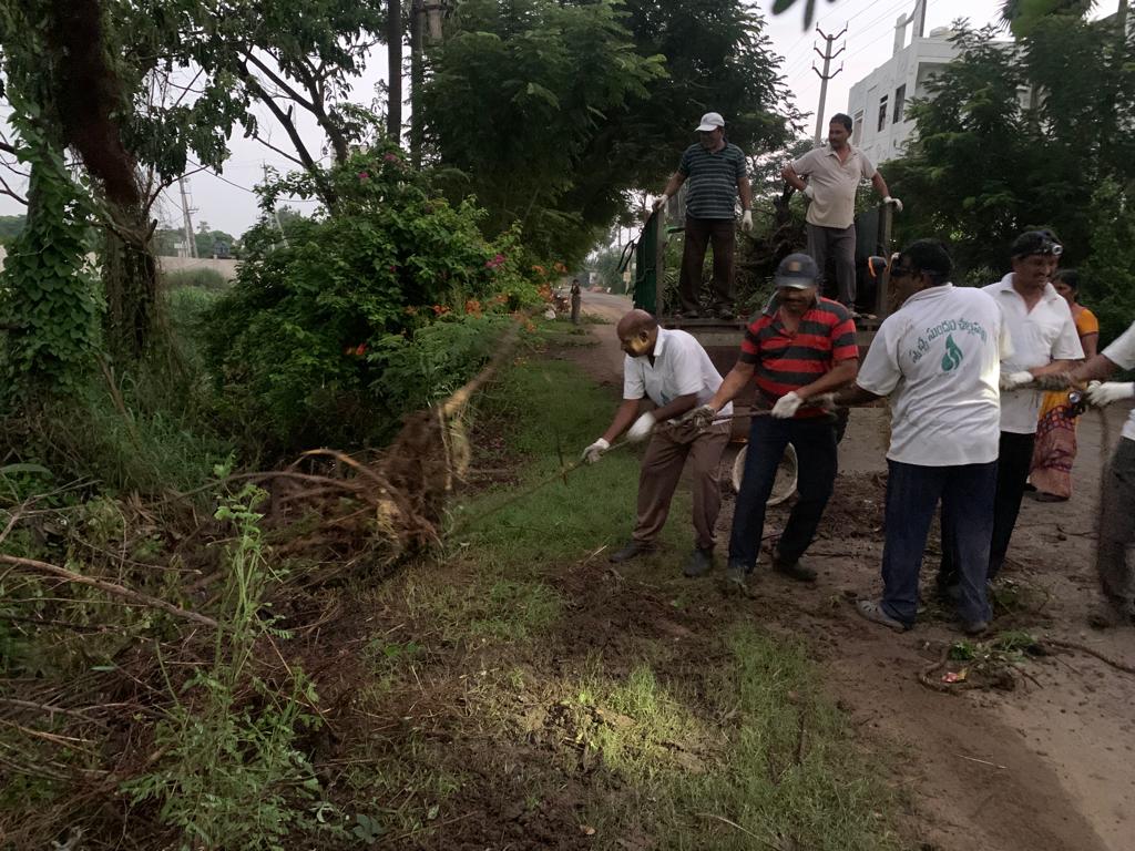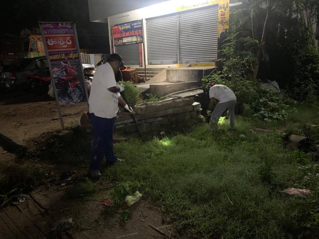 ఈ భాగం నిజానికి అదివారం నాడు వీళ్ల కృషితో శుభ్రపడిందే. కాకపోతే ఎవరో - ఎప్పుడో నరికి పడేసిన పెద్దచెట్ల కొమ్మలూ, వాటి మీద అల్లుకున్న తీగలూ, మరో ప్రక్క పైనుండి రాలిన తాటిమట్టలూ, కాయలూ, 3 రోజుల్లోనే మళ్లీ ప్రత్యక్షమైన ఖాళీ మద్యం సీసాలూ, పైన కరెంటు తీగల మధ్యగా పెరిగి, చిక్కుపడిన ఒక పెద్ద చెట్టు కొమ్మ – రెమ్మలే మళ్ళీ ఈ వేకువ అదే చోటికి ఆహ్వానించాయి!