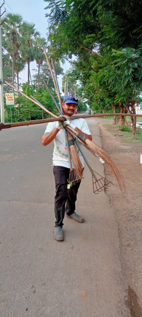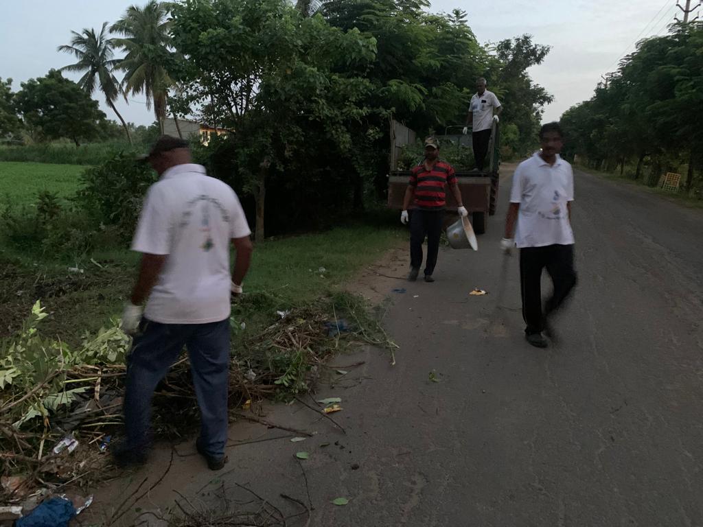 1) 4 రోజుల్నాడు శుభ్రపరచిన వెనుకటి చోట ప్లాస్టిక్ తుక్కులు ఏరి, బాటను ఊడ్చిన వారు,