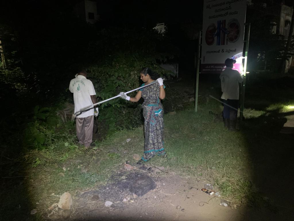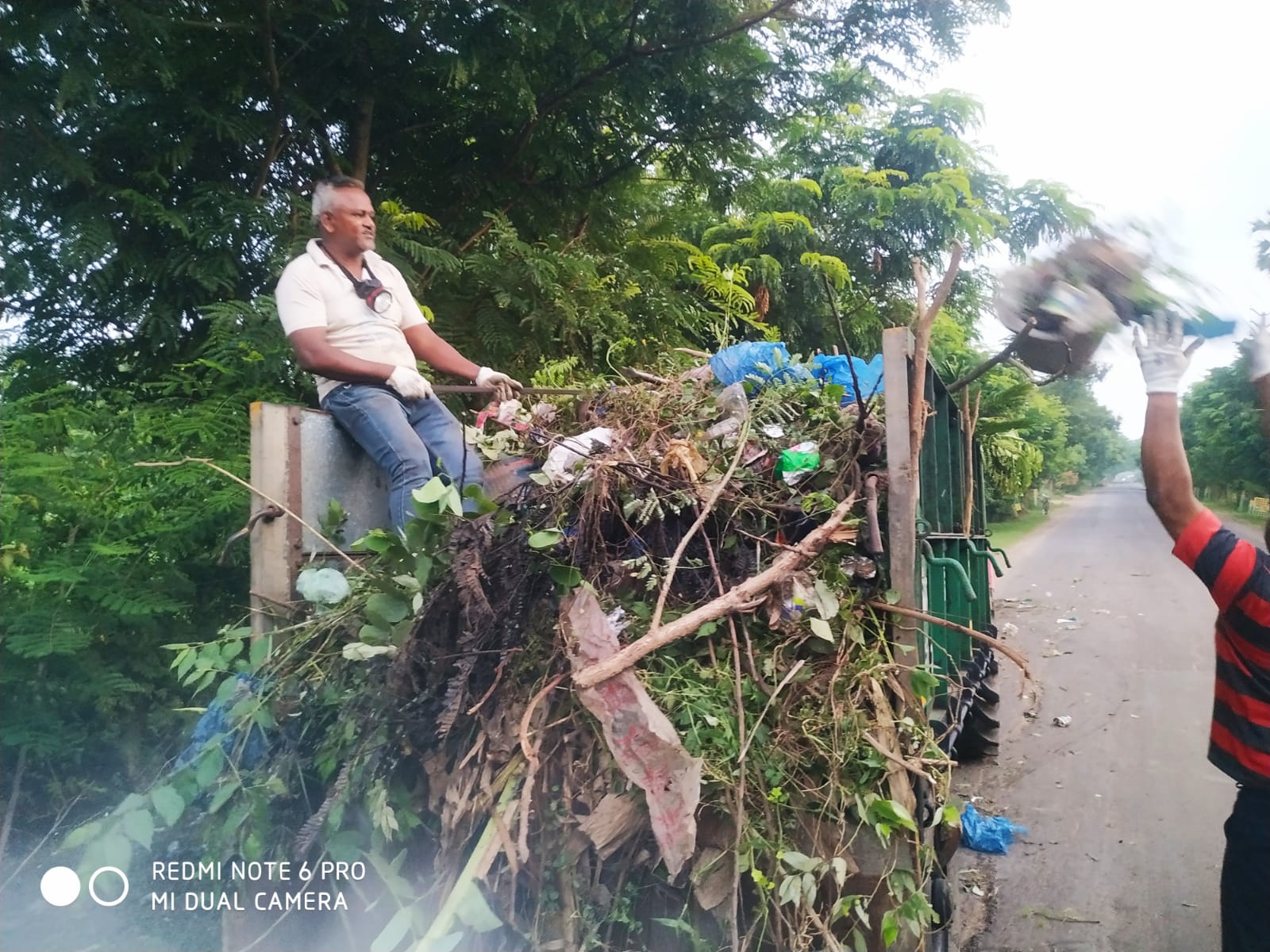 ఈ క్రమంలోనే ఒక మొక్కల పంపకందారుడు ట్రాక్టర్ లోకెక్కి ఐదుగురు మోసి, అందిస్తున్న అన్ని రకాల వ్యర్ధాల్ని అందుకొని, అవలీలగా సర్ది, త్రొక్కి, చిద్విలాసంగా పైనే కూర్చొన్న భంగిమను చూడండి! పనిలో పనిగా – ఏ పుణ్యాత్ములో విసరిన వందల కొద్దీ సిరంజీలను డ్రైను నుండి లాగి, పోసిన గుట్టను కూడ వాట్సప్ మాధ్యమంలో గమనించండి!
