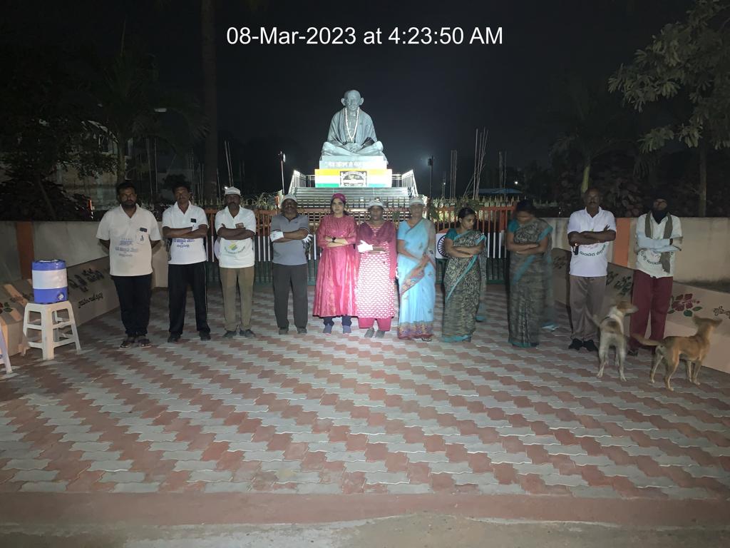 అది బుధవారం – (8.3.23) చల్లని ఉదయం - 4.23. గాంధీ పాదపీఠం దగ్గర హాజరైన డజను మంది స్వచ్ఛ కార్యకర్తలు - త్వరగా వచ్చి చేరిన మిగతా వాళ్లను కలుపుకొని - మొత్తం 29 మంది సొంతూరి బాధ్యతలు నెరవేర్చినది 3 చోట్ల!