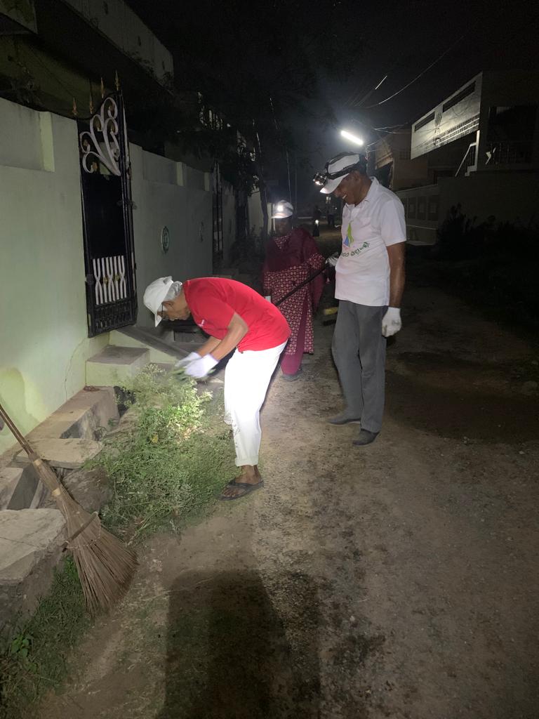 ఇంతకన్నా కష్టమైన కృషి - 10 మంది కార్యకర్తలది! కోమలానగర్ – 8 వ అడ్డరోడ్డును సంస్కరించడం! ఇరుకు రోడ్దే గాని - సగమే ఇళ్లు, సగం ఖాళీ నివేశనాలు! ఇళ్లేమో అందంగా - వీధి అందులూ, ఖాళీ స్థలాలూ పెరిగిన గడ్డితోనూ - రకరకాల పిచ్చి మొక్కలూ - తీగల్తోనూ - ముఖ్యంగా ముళ్ల పొదల్తో కార్యకర్తల సహనానికి పరీక్షన్న మాట!