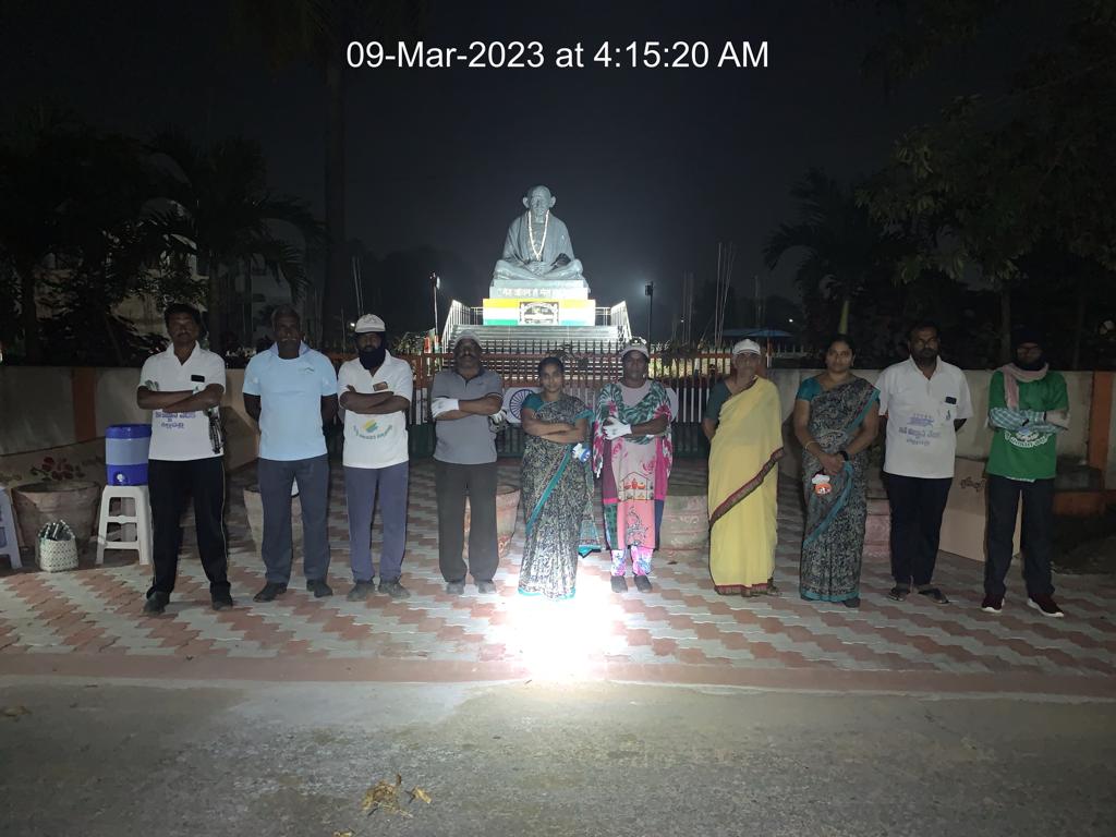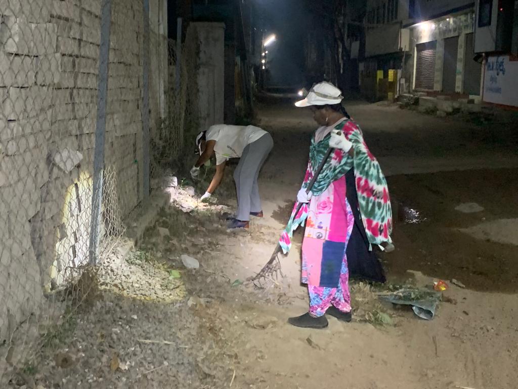 మిగతా వాలంటీర్లంతా కత్తులు - దంతెలు - చీపుళ్లతో ప్రభుత్వ పాఠశాలలోకి చొరబడ్డారు. వాళ్ల శ్రమ గంటన్నర పాటు - వెలుతురు చాలని మసక చీకట్లోనే పింగళి వేంకయ్య విగ్రహం లోతట్టు రెండు ప్రక్కలకూ వ్యాపించింది. అందుకు గాను మహిళా కార్యకర్తలు సైతం ఇనుప కంచె మీదుగా క్రిందకు దిగారు. ఐతే - ఇందరు సాధించిన పారిశుద్ధ్యమూ, అందుమూలంగా ప్రోగుబడిన గడ్డీ – గాదమూ ఎత్తడం కుదరక - ఈ రోజుకక్కడే మిగిలిపోయింది!