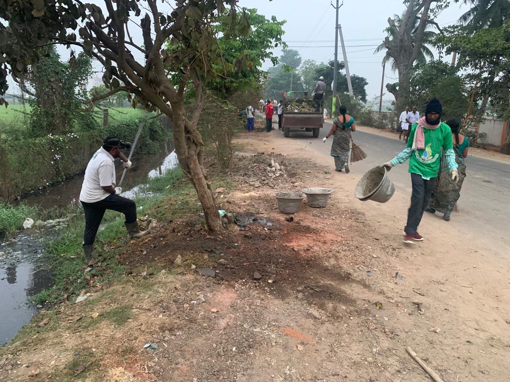 సిమెంటు కొట్టు నుండి వంతెన దాక 50 గజాల మేర - ఏడెనిమిది మంది పారిశుద్ధ్య కృషి బాగా అక్కరకొచ్చింది. అక్కడికి అదేదో తేలికైన విషయమనుకొనేరు! 20 - 30 అడుగుల పొడవునా – గజంలోతునా కంపుగొట్టే మురుగు కాల్వ ఉన్నదక్కడే! దానికేం తక్కువైంది! - నాలుగు డిప్పల్నిండా నాలుగు రకాల చెత్తను బైటకు లాగారు.