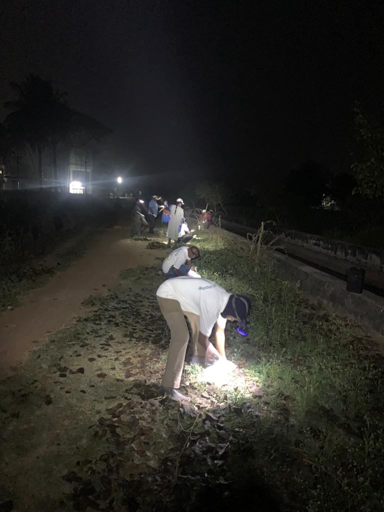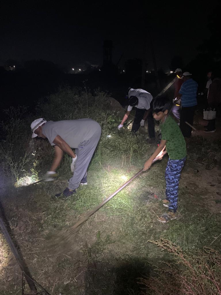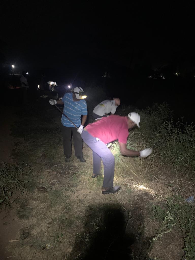 2) నిన్న కష్టించిన కృషికి పొడిగింపుగా – వంతెనకు తూర్పు బాటలో కృషి చేసిన 16-17 మంది సంగతి వేరు! కాలువ దక్షిణంగా, సైడు కాలువ గట్టున అంతా ఎగుడు దిగుళ్ల – మట్టి పెళ్లలు – ఉచ్చ మడుగులు! వెలుతురు వచ్చాక కనిపించిన కొన్ని ‘కళ్ళాలు’! అందుకని అక్కడి ప్లాస్టిక్ లు ఏరక, ముళ్ళ – పిచ్చి మొక్కల్ని తొలగించక – దారిని విశాల పరచక – వదిలేసే రకాలు కాదు గదా స్వచ్చ కార్యకర్తలు?