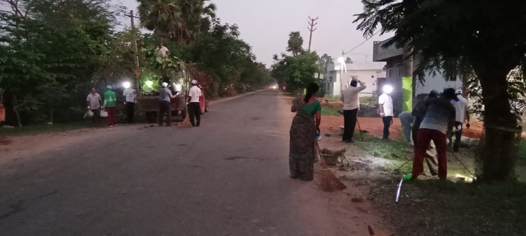 బాట తూర్పు డ్రైనులోని, ప్రక్క సందుల్లోని పిచ్చి మొక్కల గుబుళ్ళనొక డజను మంది శుభ్రపరచి