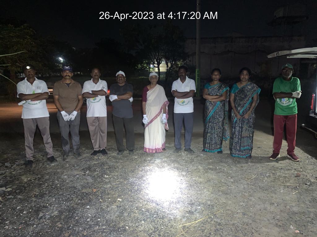 అసలా సంగతేమీ సరకు చేయక తమ సుదీర్ఘ ప్రణాళిక ప్రకారం నిర్వికారంగా, నిశ్చలంగా, రాగద్వేషరహితంగా తమ పని తాము చేసుకుపోతున్న ఈ పాతిక మంది కర్మవీరుల 26-4-23 వ నాటి రకరకాల పారిశుద్ధ్య ప్రయత్నము లేవనగా: