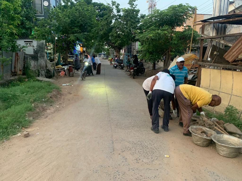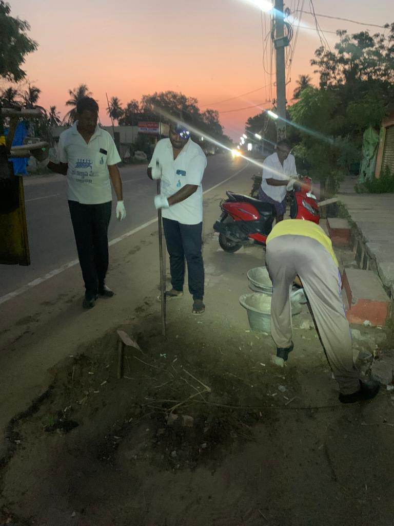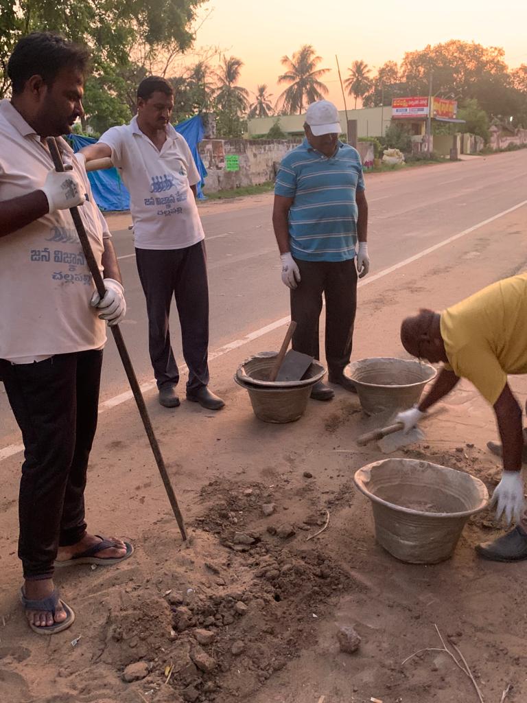 ఇటు రహదారి మీద అడ్డాలు తొలిగే - అటు చిన్న కార్ల స్టాండుకు సౌకర్యం కలిగే ఉభయతారకమైన ఊరి మెరుగుదల కృషి గంటన్నరలో కార్యకర్తల పంచకం పూర్తి చేసింది!
