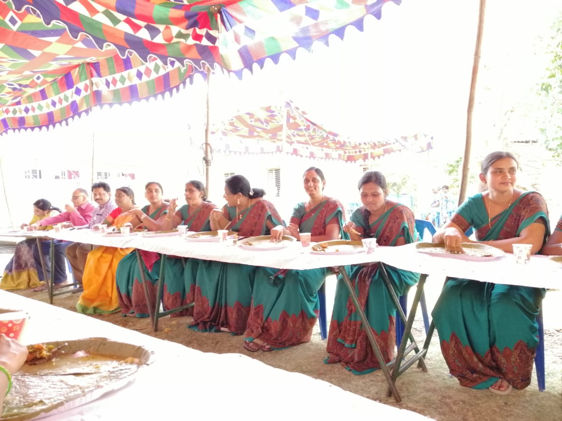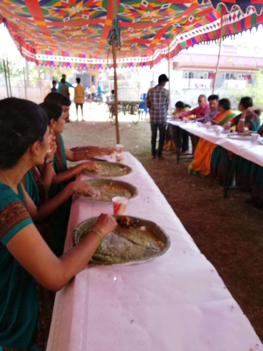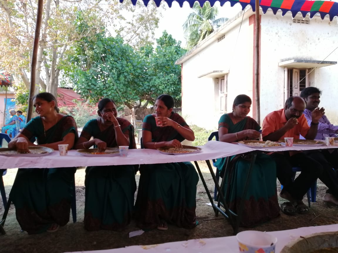 పద్మావతి హాస్పటల్ లో కాంపౌండర్ గా పనిచేస్తున్న గౌతమ్, నర్స్ గా పనిచేస్తున్న దేవి ల పెళ్లి నిన్న ఉదయం జరిగింది. ఈ పెళ్లి విందులో భూమిలో కలవని వస్తువులను వేటినీ వాడలేదు. ఆరటి ఆకులను, పేపర్ గ్లాస్ లను వాడారు. ఫ్లెక్సీ కి బదులు వారిద్దరి బొమ్మలతో సహా రాయించిన గుడ్డ బ్యానర్ ప్రధాన ఆకర్షణగా నిలిచింది. స్వచ్చ చల్లపల్లి స్ఫూర్తిని కొనసాగించిన దేవి, గౌతమ్ లకు స్వచ్చ కార్యకర్తలందరి తరపున ధన్యవాదములు.