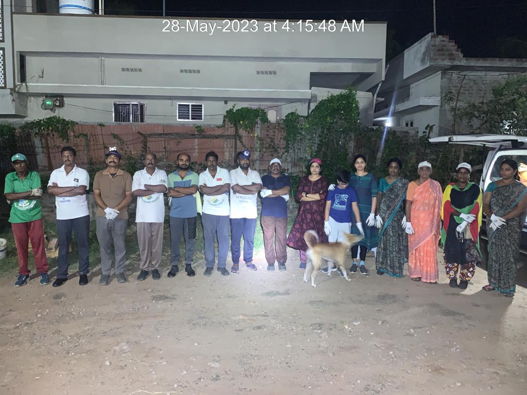 ఆదివారం (28.5.23) కావడంతోనూ - ఇతర కారణాల వల్లనూ ఈ వేకువ గ్రామ సామాజిక సేవకుల సంఖ్య మళ్ళీ 42 కు చేరింది! – అది కూడ 4.15 వేళకు 17 గానూ, కాలక్రమాన 40 కి పై గానూ! వాళ్ల కార్య రంగం – 6 వ రోజు కూడ వడ్లమర వీధే!