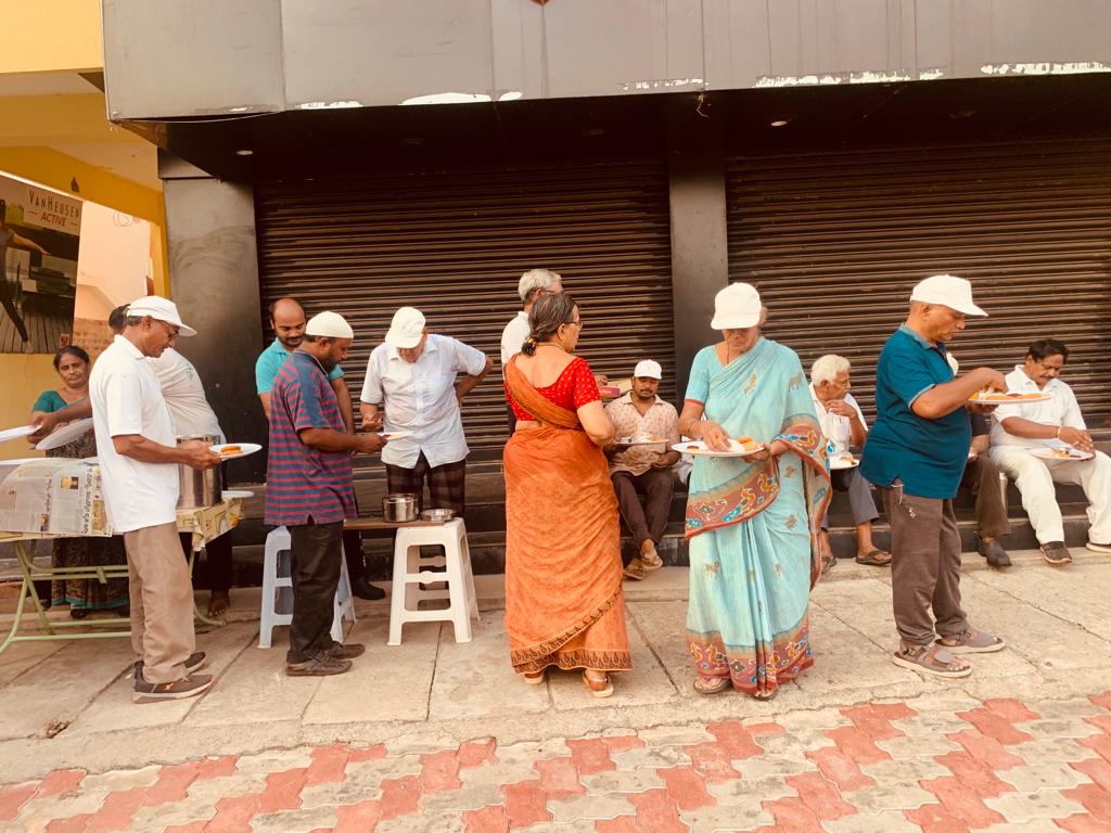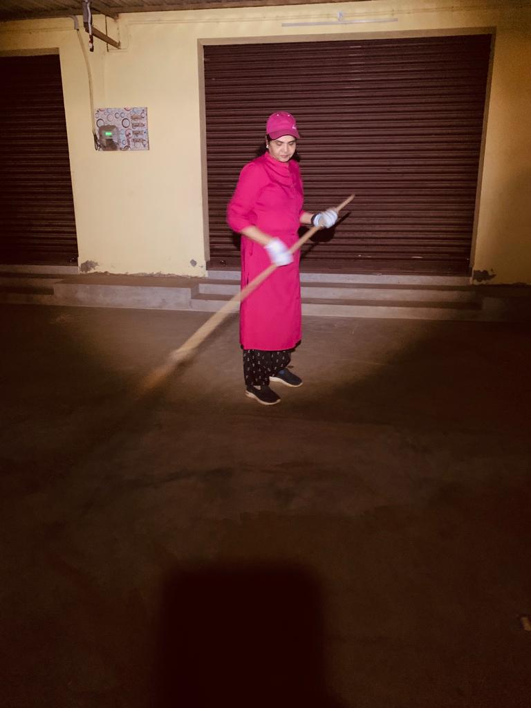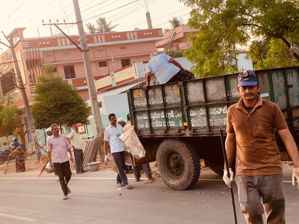 బందరు వీధి మెరుగుదల కోసం చేయగలిగినంత శ్రమ చేశాక - 6.10 కి సరదా కబుర్ల -  ఛాయా చిత్రం తీశాక – 62 వ జన్మదిన వేడుకల మహిళ రాయపాటి రమ గారి శ్రమదానోద్యమ సంకల్ప నినాదానంతరం –