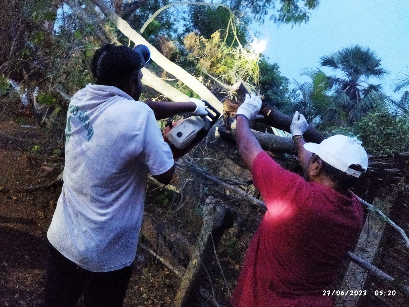 బాగా పెద్దదైన పడిపోయిన వేప చెట్టును నిన్న - నేటి వేకువ వేళల్లో - తడి మట్టి మీద నిలిచి పనిచేస్తూ - కొమ్మల్ని విడగొట్టి - ముక్కలు కోసి - వాటిని చేర్చవలసిన చోటుకు చేర్చిన నలుగురైదుగురు కార్యకర్తలభినందనీయులు - మళ్లీ ఆ వృక్ష వ్యర్థాలన్నీ ఊరి అవసరాల కోసం ఎప్పుడెక్కడెలా ఉపయోగపడతాయో - కార్యకర్తలకొక అంచనా ఉన్నది!