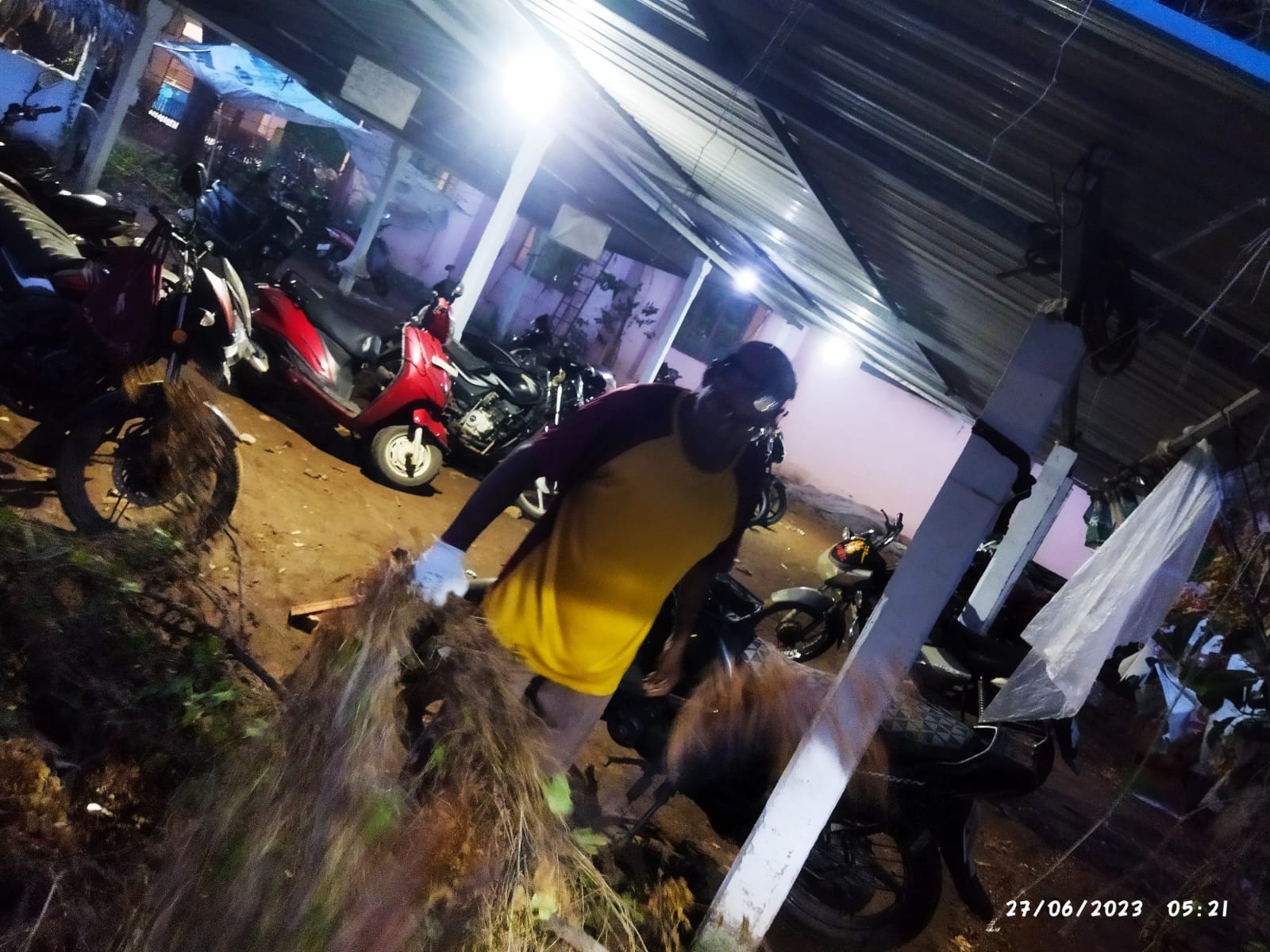 మంగళవారం (27.06.2023) చీకటి వేకువలో ఐదుగురు నిర్వహించిన వేడుకది! రంగస్థలం - చల్లపల్లిలోని RTC బస్ ప్రాంగణం - ద్విచక్రవాహనాల షెడ్డు దగ్గరే, పనీ ఇంచుమించుగా నిన్నటిదే!