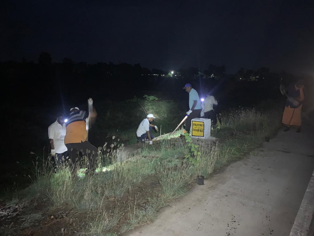 మొక్కలు నాటిన వాళ్ళు కాస్త సమయం దొరికితే చేతులు ముడుచుక్కూర్చోలేదు – గోకుడు పారల్తో, చీపుళ్లతో బాటల జంక్షన్ దగ్గర చెత్తా చెదారాన్నీ, దుమ్మునూ చెక్కి ఊడ్చి, స్వచ్ఛ కార్యకర్తలనిపించుకొన్నారు!