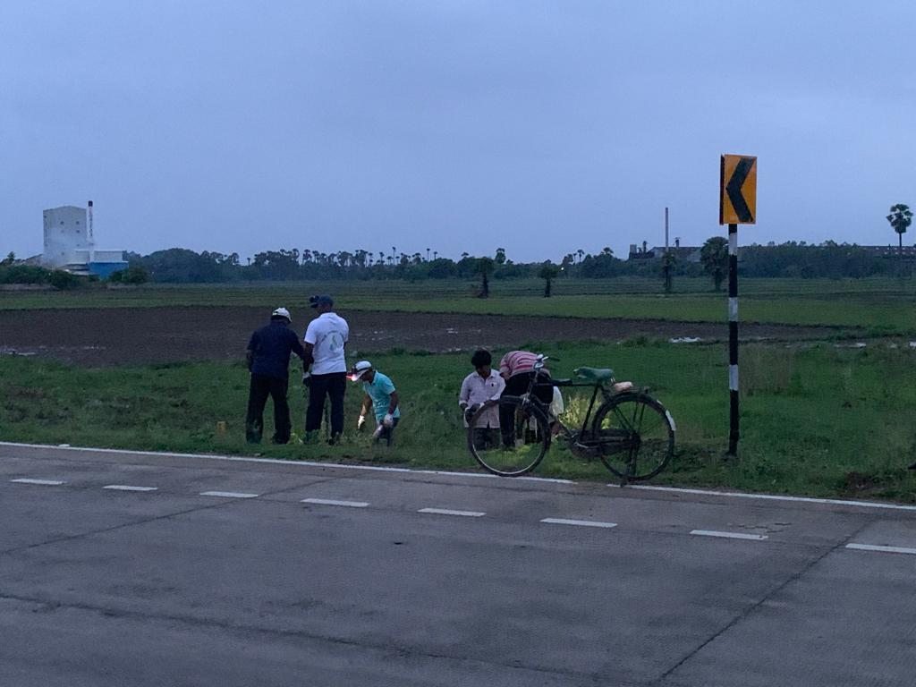 ఈ వేకువ 21 మంది కార్యకర్తలూ, రెడ్ క్రాస్ సంస్థ ప్రతినిధులుగా ఐదుగురూ బందరు రహదారిలో శివరామపురం క్రాస్ రోడ్డుకు 4 ప్రక్కలా ఈ 3 దశలూ పూర్తి చేశారు. సుశిక్షితులైన కార్మికుల్లా అలవోకగా ఈ మట్టి పిసుకుడూ, మొక్క నాటుడు పనులూ చేసుకుపోతున్న వైద్య ముఖ్యులూ, పాత్రికేయులూ, వణిఖ్ ప్రముఖులూ, ఉద్యోగులూ, రైతులూ, శ్రమదాతలుగా మారడాన్ని మనసారా అభినందించాలి !