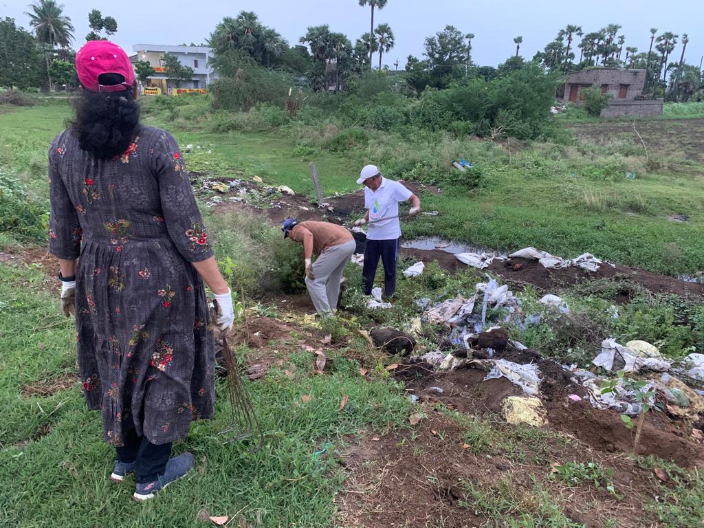 వడివడిగా ఇన్ని మొక్కల్నాటిన స్వచ్ఛ కార్యకర్తలు ఇంకో 15 నిముషాలు నిర్దేశితకాలం మిగిలిపోతే- వాళ్ల బుద్ధి పోనిచ్చుకోకుండా - రహదారి దక్షిణాన ఎవరో వదలిన (ఫంక్షన్ల తాలూకు) గలీజులెత్తివేసే పనికి దిగారు!