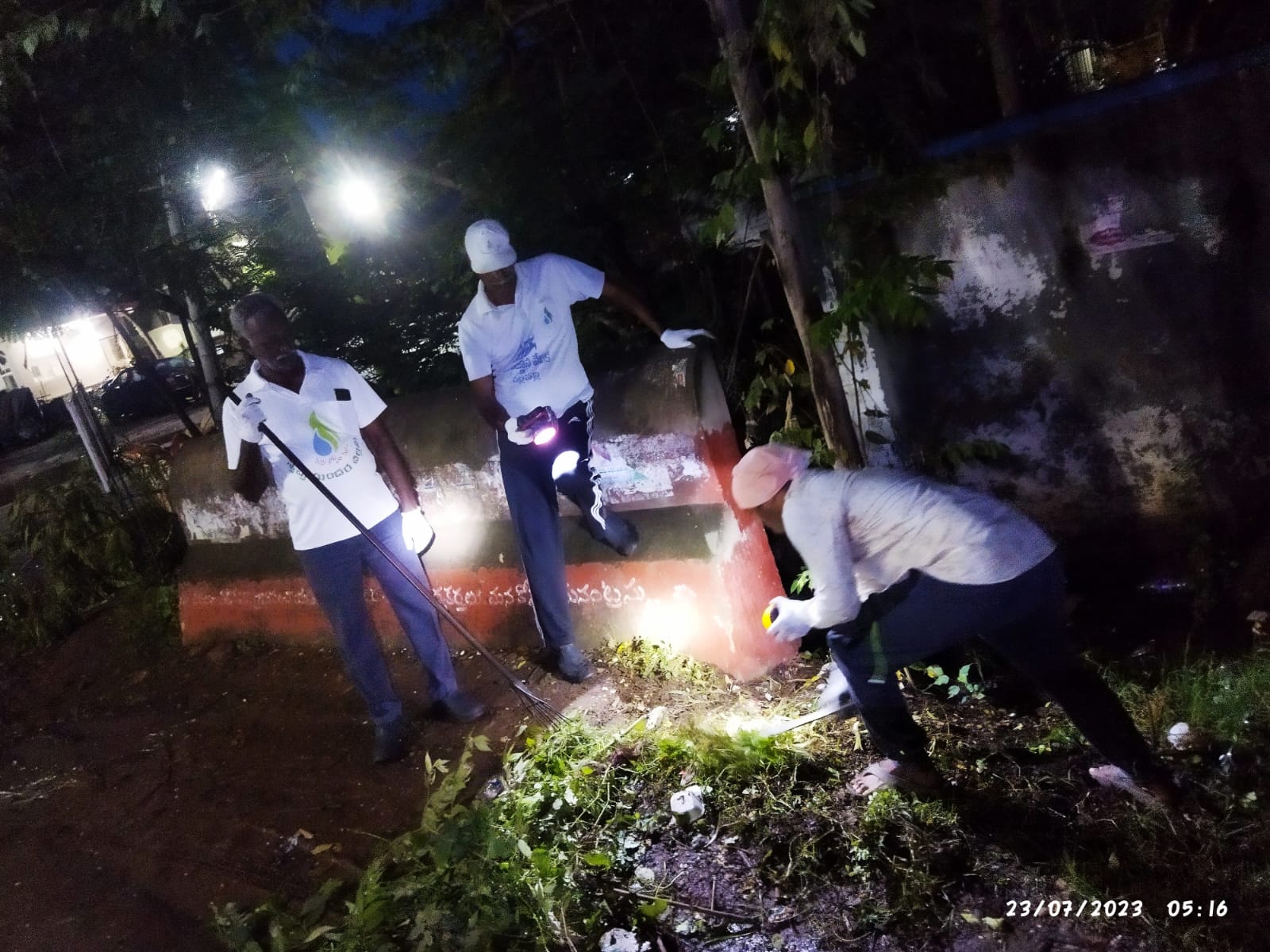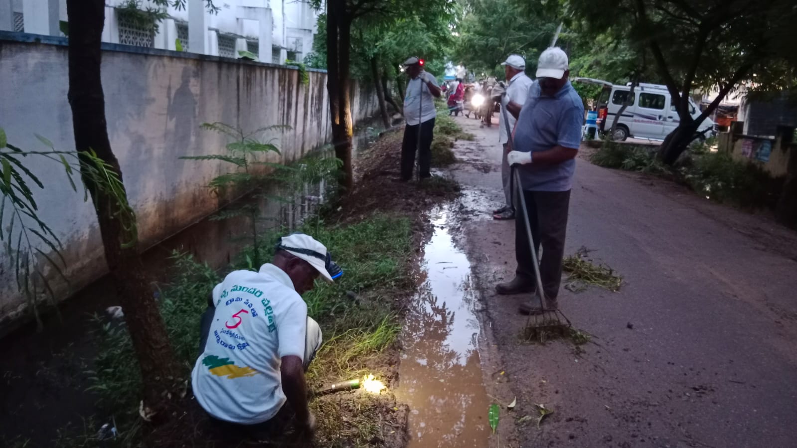 శ్రమ దాతలు 23 మంది, వీధి పారిశుద్ధ్య స్థలం బెజవాడ మార్గంలోని ప్రభుత్వ సామాజిక వైద్యశాల, పని వేళ వేకువ 4.30 -7.00 ల నడిమిది, బాగుపడ్డ వీధి నిడివి సుమారు 70 గజాలు....