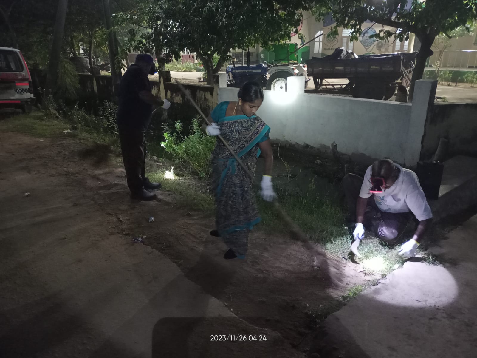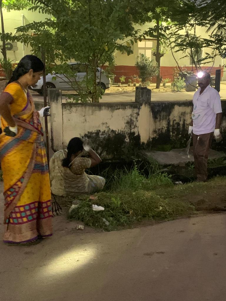 – చీకట్లోనే మురుగ్గుంటలో కాలు పెట్టి, కొమ్మ రెమ్మల్ని లాగుతున్నది 3 గ్గురు విశ్రాంత ఉద్యోగులు!