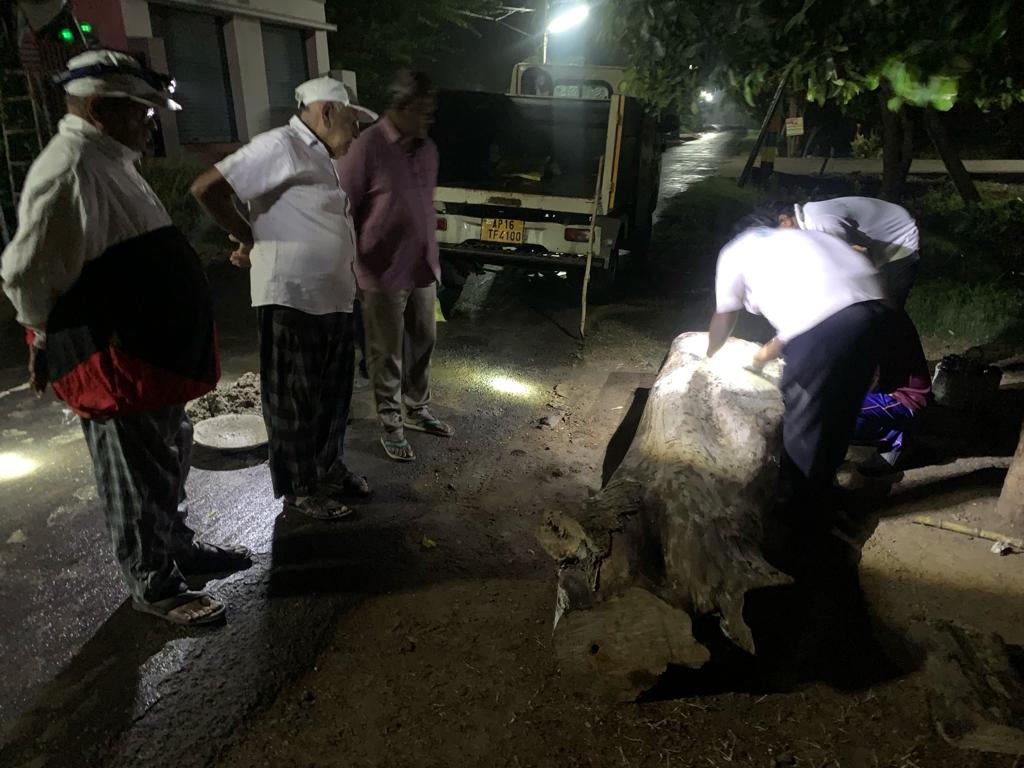 గాలీ - వానా జమిలిగా పడే సమయంలో 4:20 - 6:00 నడుమ నలుగురు రెస్క్యూ టీమ్ వాళ్లూ, ఇద్దరు వృద్ధులూ గంగులవారిపాలెం రోడ్డులో – మా ఇంటి సమీపంలో వడ్రంగి పనులకేల పూనుకోవలె? ఏడో వాడిగా నేను వెళ్లానంటే – మా వీధిలో – మా ఇంటి ముందర కనుక వెళ్లితిని!