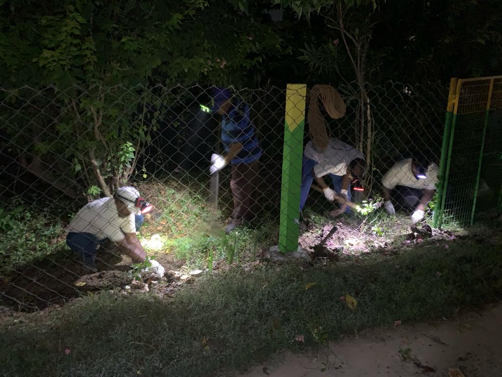 2) రహదారి ఉత్తరాన ఎగుడు దిగుడు స్తలాన్ని చదును చేయుట మరొక