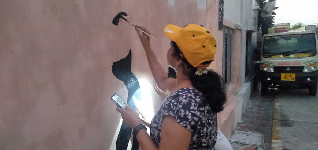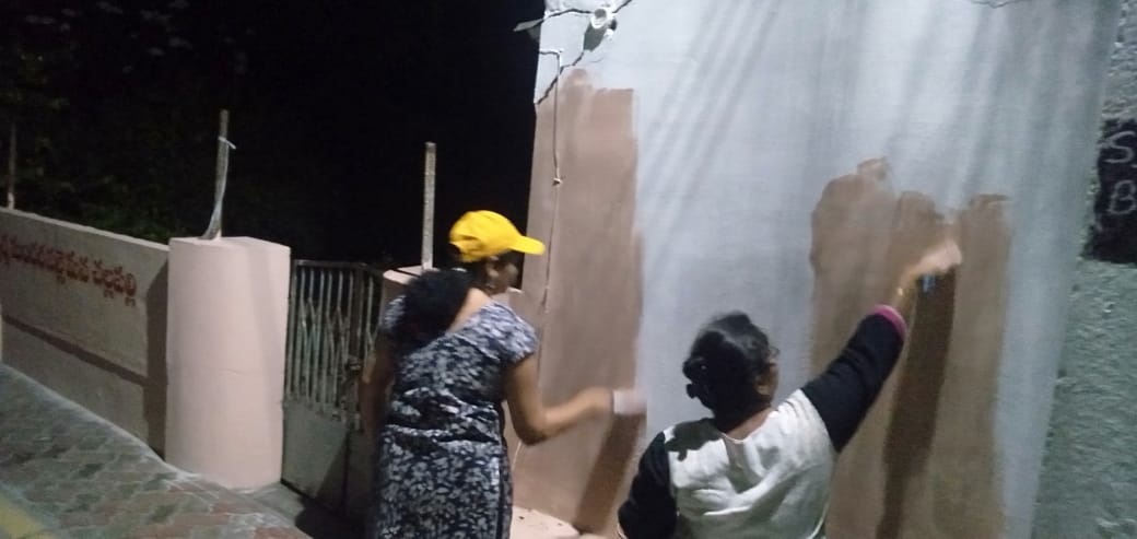 3. కమ్యూనిస్టు వీధిలో ఐదుగురు కొనసాగిస్తున్న ప్రహరీల సుందరీకరణ యజ్ఞంలో ముగ్గురు కార్యకర్తల బట్టలకు, వొంటికి రంగులులంటడం చూశాను. ఈ రోజు వీరిలో ఇద్దరు కొత్తగా మరొక ఇంటి గోడకు తలంటి పోశారు. (వీరిలో ఒక కళాకారిణి చిత్రిస్తున్న ”అత్యాధునిక యువతి” పూర్తి సోయగాన్ని రేపు మనం తిలకించగలమనుకొంటా!)