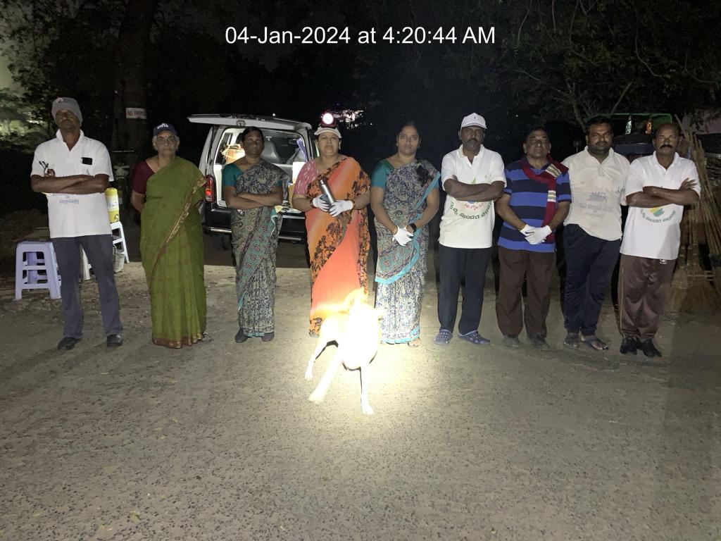 అడుగుల్తో కదం త్రొక్కినది 29 మంది! 4.20 నుండి 6.10 దాక RTC ప్రాంగణంలో ఆ అడుగులలా పడుతూనే ఉన్నాయి! ఇప్పటికి 4 రోజులుగా కార్యకర్తలు ఈ ఆవరణలోని అశుభ్రత, అస్తవ్యస్తత, కాలుష్యాల మీద కత్తులు దూస్తూనే ఉన్నారు ! RTC సిబ్బందిగాని, సమీప వ్యాపారులు గాని జోక్యం చేసుకోనేలేదు!