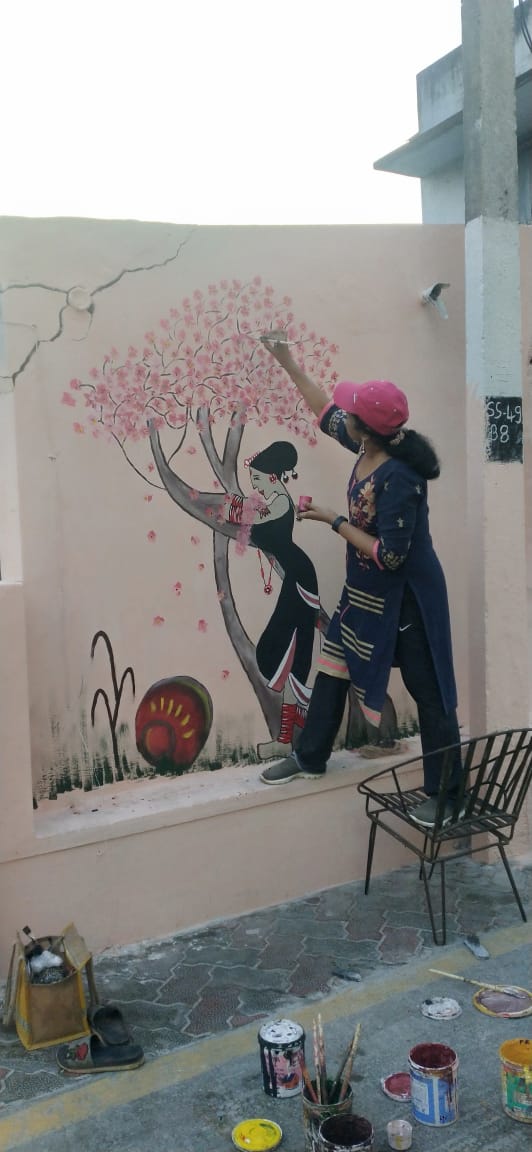 - సుందరీకరణ దళం నానాటికీ తన సంఖ్యా బలం పెంచుకొంటున్నది – స్థానిక (కమ్యూనిస్టు వీధి)మహిళలు క్రమంగా వీరితో చేరి, ప్రహరీ గోడల్ని కడిగి శుభ్ర పరచడంలో సహకరిస్తున్నారు. “వృక్ష ప్రకృతితో తాదాత్మ్యం చెందుతున్న యువతి” ప్రహరీ గోడ మీద కొలువు తీరి, ఆ వీధి ప్రయాణీకులను ఆకర్షిస్తున్నది!
