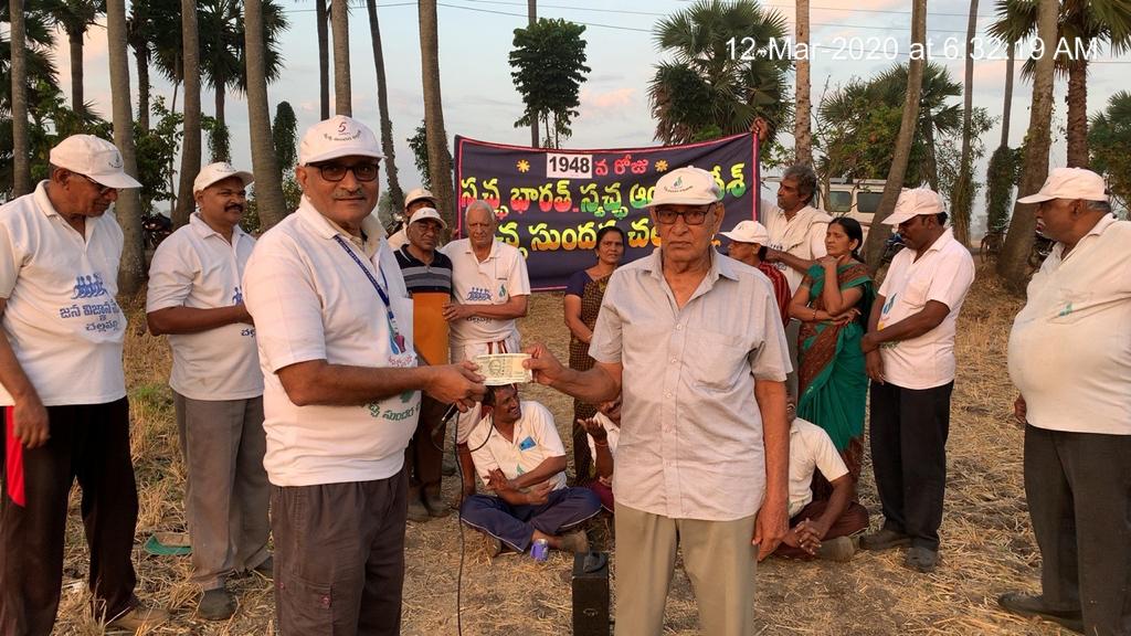ఐదారేళ్లుగా స్వచ్చోద్యమ చల్లపల్లి తో మమేకమైపోయిన- రెండు నెలలుగా ‘దావణ గెరె’(కర్ణాటక)లో ఉంటున్న 82 ఏళ్ల ఔత్సాహికుడు వేమూరి అర్జునరావు మాష్టారు- కూర్చొని, నేటి స్వచ్చ సుందర కృషిని గమనించి, సంతృప్తి పొంది, కాఫీ ఖర్చుల నిమిత్తం 700/- ఇచ్చి, రెండు నెలల తర్వాత సోదర కార్యకర్తల్ని కలిసిన ఉద్వేగంతో గ్రామ స్వచ్చ-సుందర నినాదాలను ముమ్మారు ప్రకటించి-6.45 కు నేటి మన బాధ్యతా నిర్వహణకు స్వస్తి పలికారు.