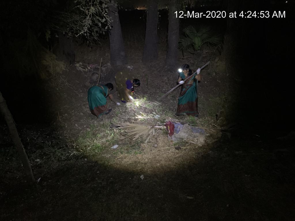 తమ గ్రామ బాధ్యతలు మరచిపోని 30 మందికి పైగా కార్యకర్తలు ఈ వేకువ 3.59 నుండి 2 గంటల 15 నిముషాల పాటు ఊరిలోని, ఊరి బయట-మొత్తం 4 ప్రాంతాలలో ప్రణాళికా బద్ధంగా నెరవేర్చిన ముప్పేట కర్తవ్యాల వివరాలిలా ఉన్నాయి: