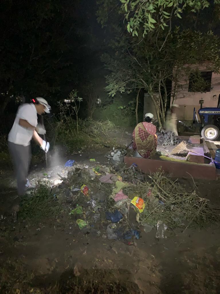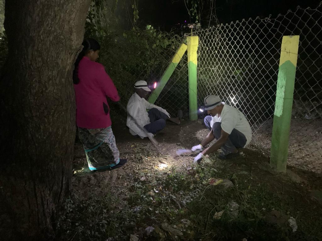 -బస్టాండు లోతట్టున డజను మంది పిచ్చి- ముళ్ల చెట్లను ఛేదించి, ప్లాస్టిక్ తుక్కులేరి, 2 రకాల సీసాలను విభజించి, చేర్చవలసిన చోటుకు చేర్చుట,