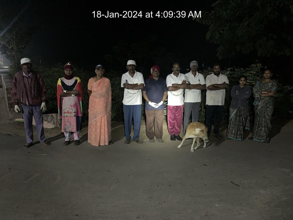18-1-24 (గురువారం) నాటి లెక్క అది! రోజుటికన్న - వేకువ 4.09 కే నేటి కార్యకర్తల్లో తొలి సగం (డజను) మంది గ్రామ వీధి పారిశుద్ధ్య కృషికి ఉత్సాహం ప్రదర్శిస్తే – మలి డజను మంది వచ్చి, జత కలిశారు. ఇక అక్కడి నుండి నికరంగా 2 గంటల పాటు బండ్రేవు కోడు వట్టిపోతున్న మురుగు కాల్వ ఉత్తర - దక్షిణ ఉభయ దిశలా సాయుధపాణులై జరిపిన పోరాట ఫలితంగా :