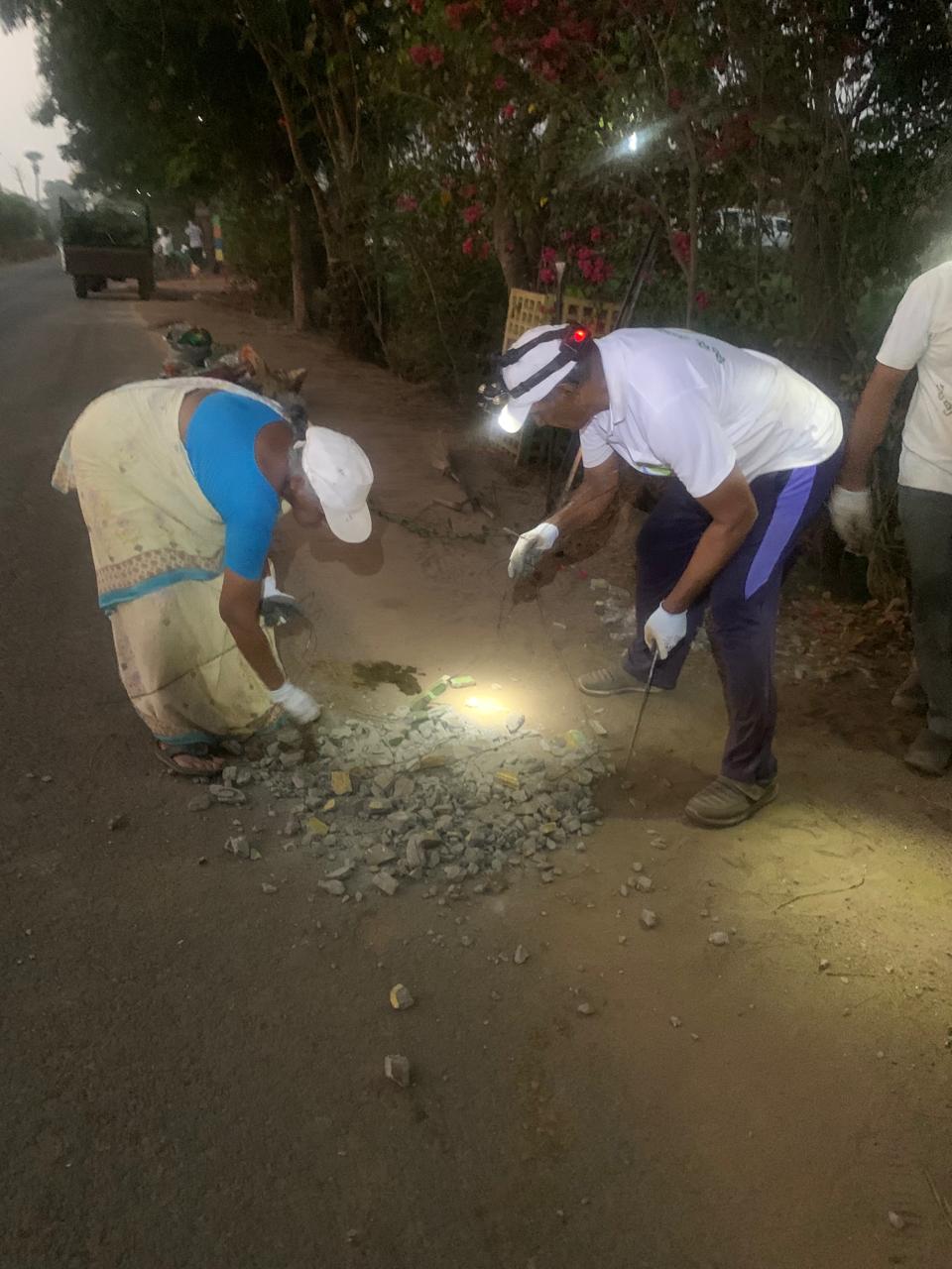 - ఇక చివరగా కాటాల వద్ద రోడ్డు మార్జిన్ ఎగుడు దిగుడు మట్టి మేటల్ని సవరిస్తూ 3 గ్గురూ,