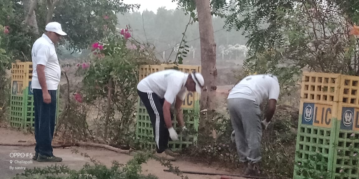 అసలే దేశాన్ని వణికిస్తున్న కరోనా- కల్లోలం, రాష్ట్ర కేంద్ర ప్రభుత్వాల హెచ్చరికల నేపధ్యంలో కూడ సడలని పట్టుదలతో 20 మందికి పైగా స్వచ్చ ఉద్యోగ- కార్యకర్తలు తమ శ్రమను సొంత ఊరికంకితం చేయడం విశేషం! చతుశ్చక్ర కాటా ఆవరణలో తమ వాహనాలను నిలిపి, (చీపుళ్లు- కత్తులు-రంపాలు-దంతెల వంటి) ఆయుధదారులై, పిచ్చి, ముళ్ల కంపల్ని నరకడం, రోడ్డును, డ్రైన్లను, వాటి గట్లను, ఊడ్చడం, విచక్షణారహితంగా విద్యుత్ ఉద్యోగులు నరికిన చెట్లను ఉన్నంతలో సుందరీకరించడం- డ్రైను లోను, గట్ల మీద నరికి పడేసిన కొమ్మల్ని రెమ్మల్ని, ఆకుల్ని ఇతరేతర వ్యర్ధాలను పోగులు చేయడం, కొన్ని పూల మొక్కల కుదుళ్లను చక్కదిద్ది, చుట్టూ కంపను సరి చేయడం వంటి పనులన్నీ 6.05 నిముషాలకు - పని నిలుపుదల సమయానికల్లాపూర్తి చేసిన ఈ కార్యకర్తలు తామనుకొన్న గ్రామ కర్తవ్యాలను పూర్తి చేయనే చేశారు.