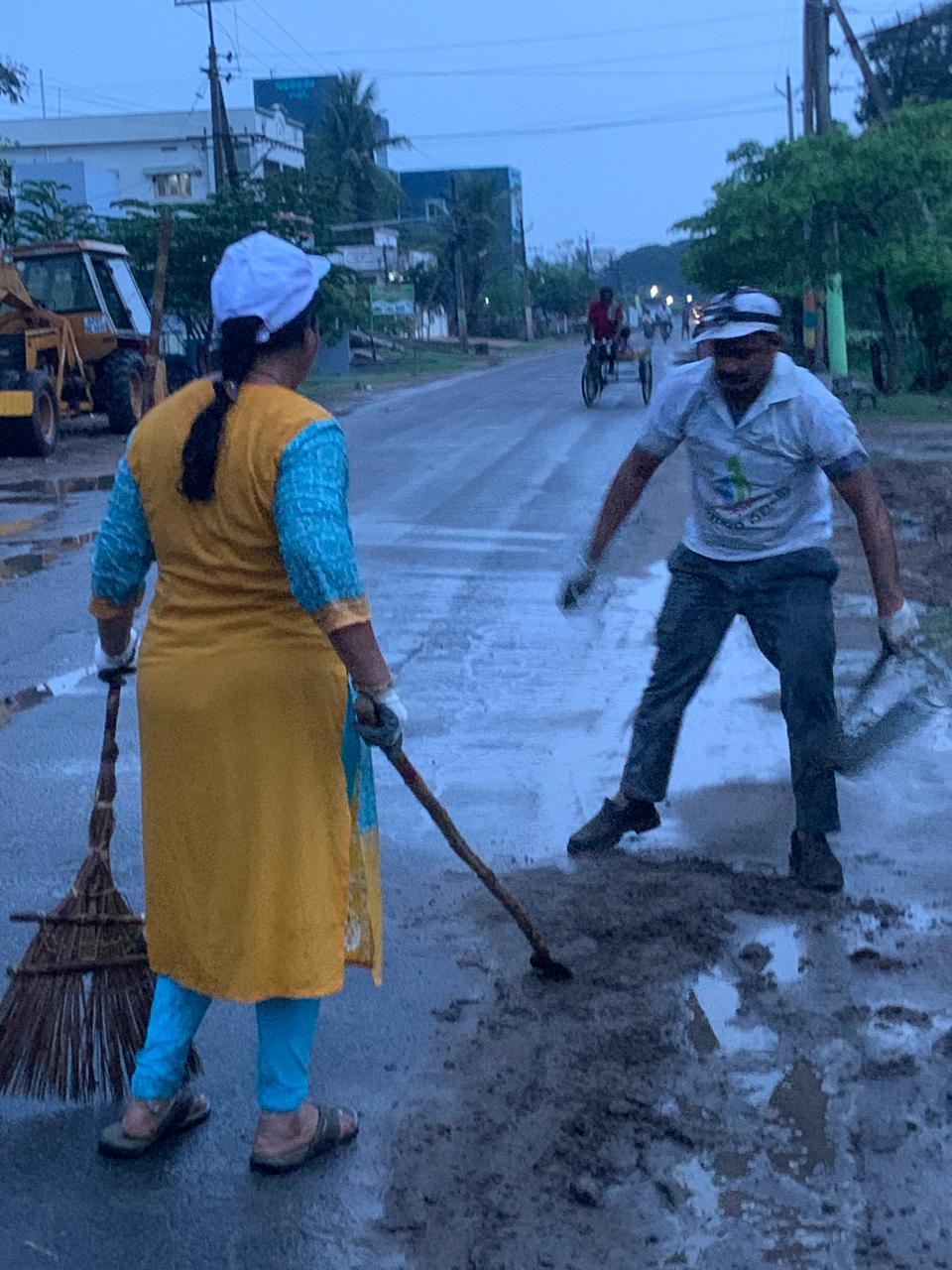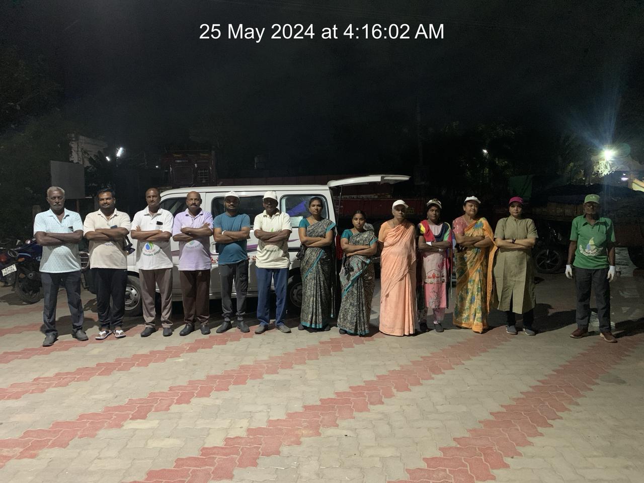 ఎంత దారుణమైన ఉక్కపోతగా ఉన్నా - 12-13 మంది కార్యకర్తలు 4.15 కాకముందే బెజవాడ బాటలోని పెట్రోలు బంకును చేరుకున్నారు; నిన్నటి తరువాయి వీధి స్వచ్ఛ కర్మలు ప్రారంభించారు; మిగిలిన కార్యకర్తలు ఒకొక్కరుగా రావడమూ, చేతొడుగులూ - పనిముట్లూ తీసుకుని వీధి కాలుష్యాలపైన కాలు దువ్వడమూ జరుగుతూనే ఉన్నది.